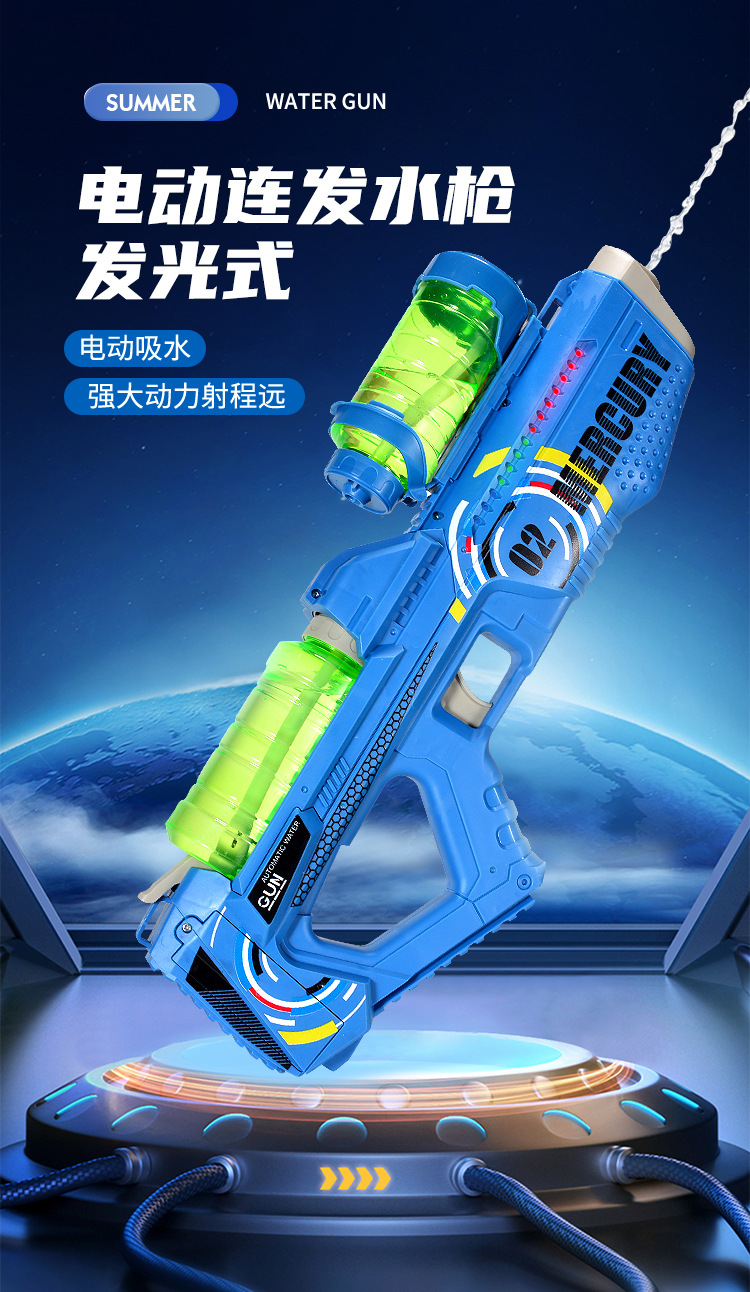 국경을 넘는 전자동 전기 연사 물총 소년 장난감 화려한 조명 대용량 어린이 고속 물총