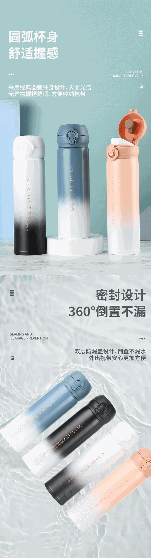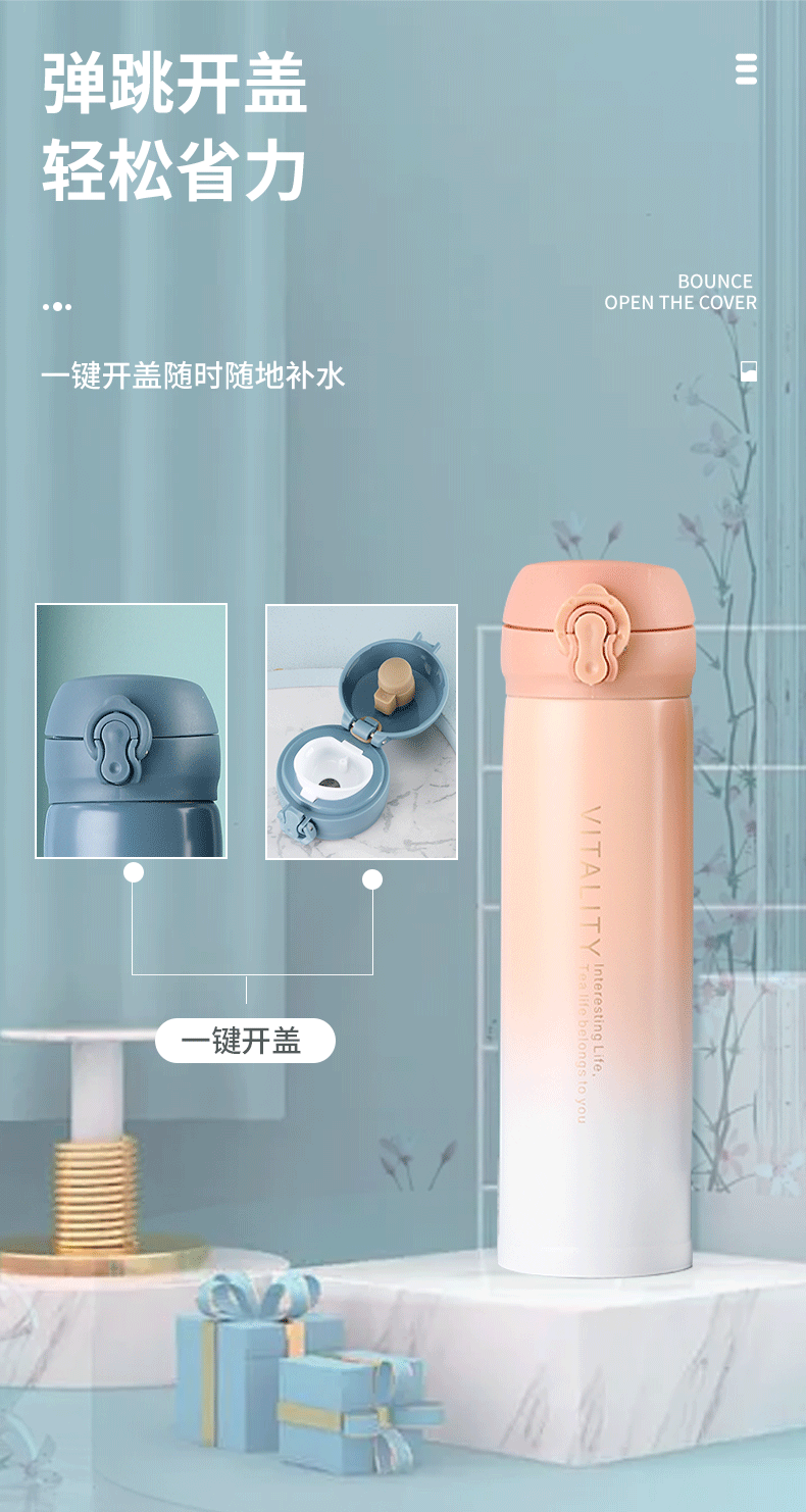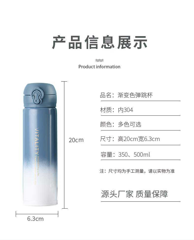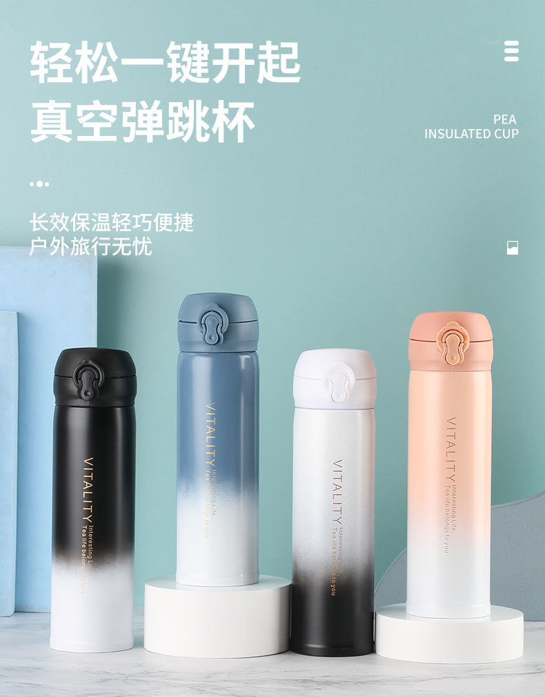 제조 업체 304 스테인레스 스틸 진공 머그잔 높은 색상 값 그라디언트 바운스 컵 휴대용 선물 컵 재고스토어 가기
