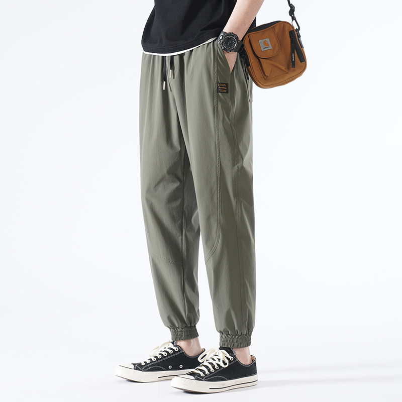 캐주얼 바지 남성 여름 신상품 남성용 아이스 실크 스트레치 커버 트렌디 브랜드 루즈한 다리 바지 모든 경기 남성복