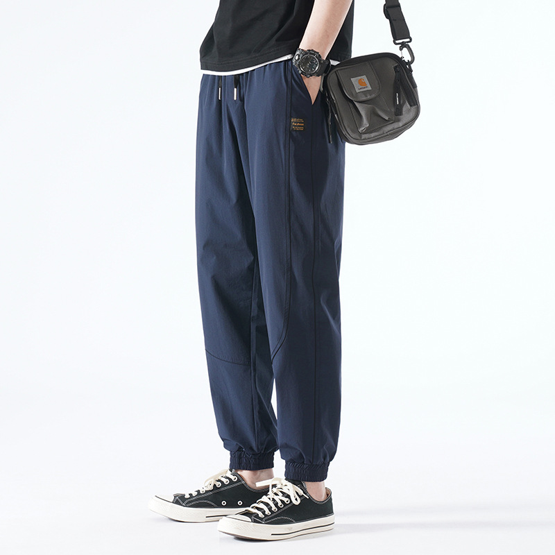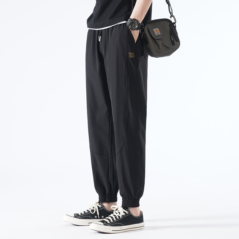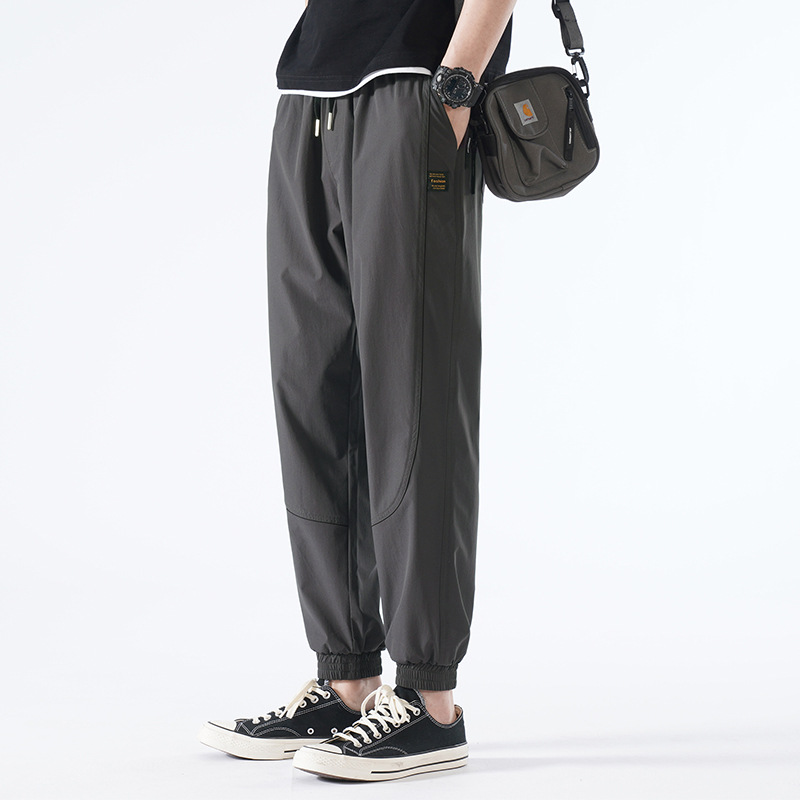 캐주얼 바지 남성 여름 신상품 남성용 아이스 실크 스트레치 커버 트렌디 브랜드 루즈한 다리 바지 모든 경기 남성복스토어 가기