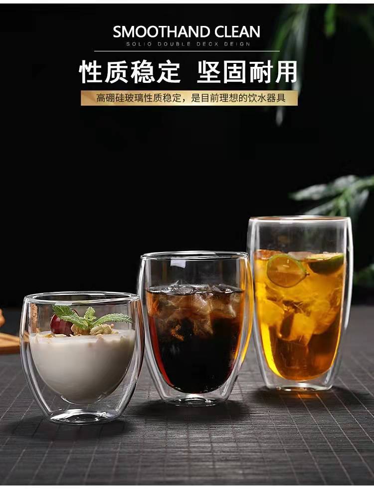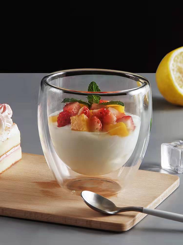 이중층 계란 모양 투명 고 붕규산 유리 아이스크림 컵 우유 물 컵 디저트 컵 선물 커피 컵 찻잔스토어 가기