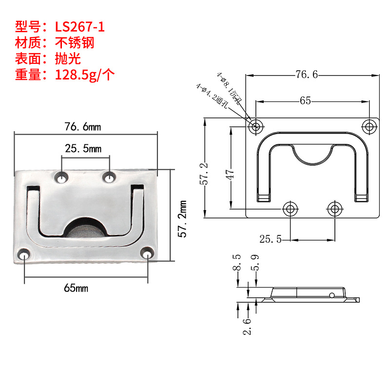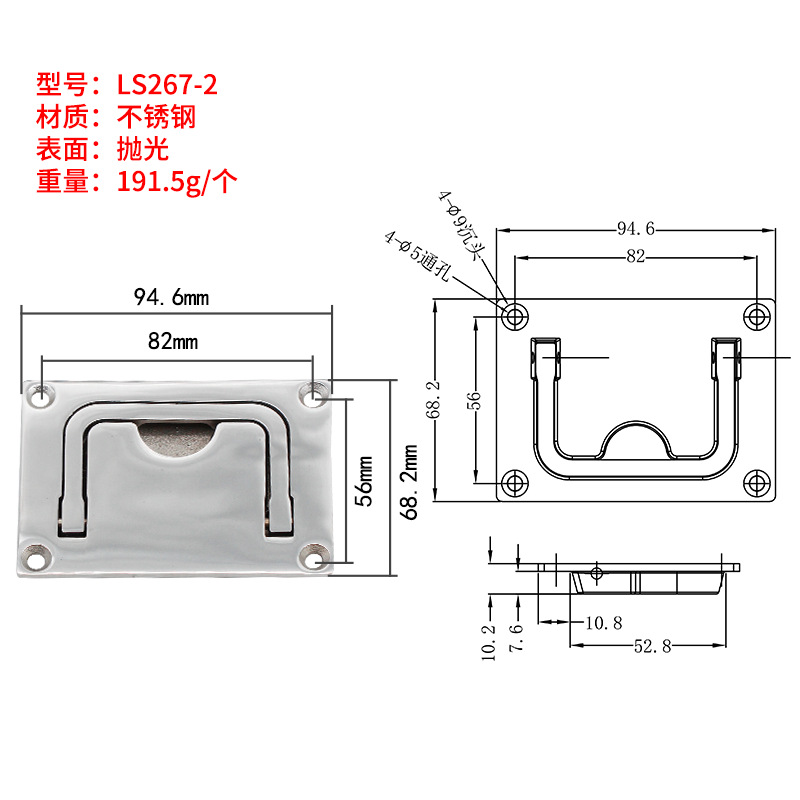 Demke LS267 해치 커버 핸들 패널 접이식 핸들 산업 설비 숨겨진 걸쇠 바닥 핸들 304 스틸