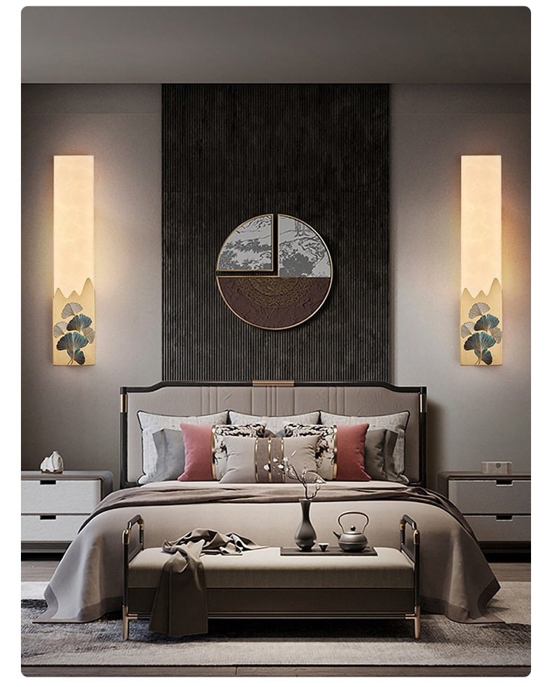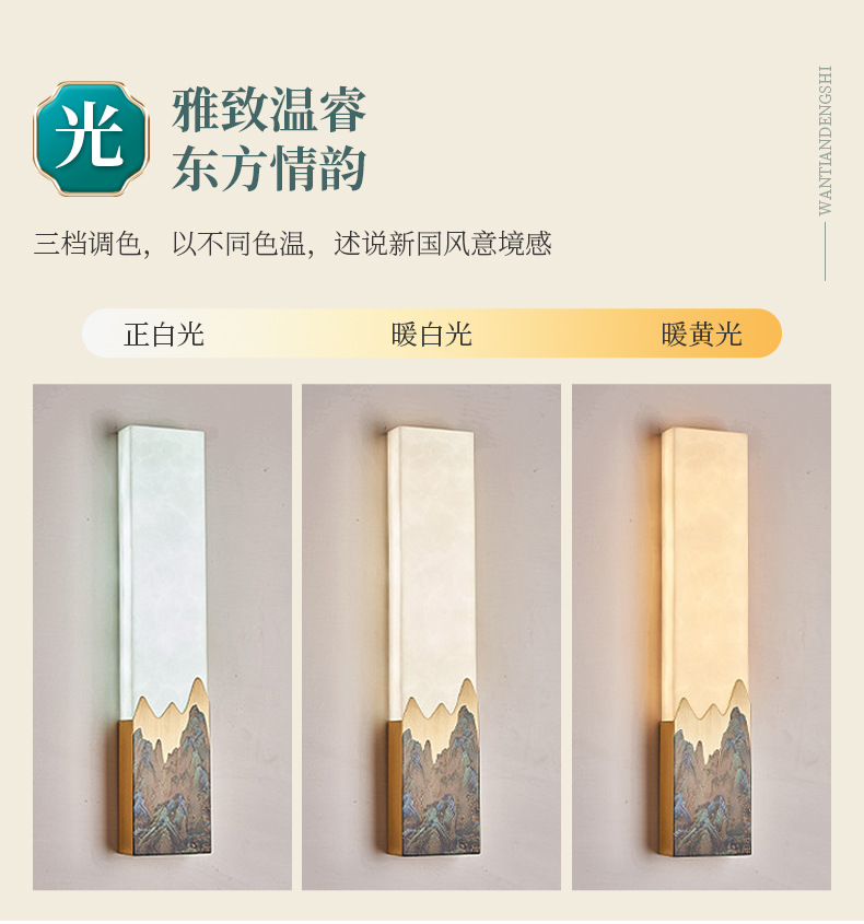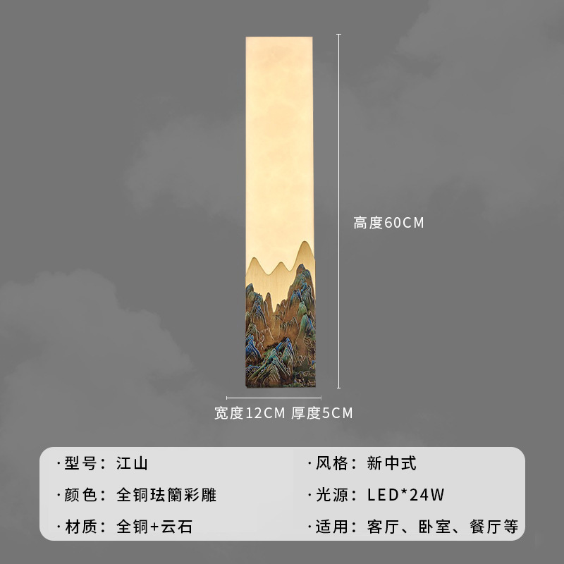신중국식 전구리 벽등 에나멜 대리석 거실 배경 벽등 중국식 아트 베란다 침실 침대 옆 램프
