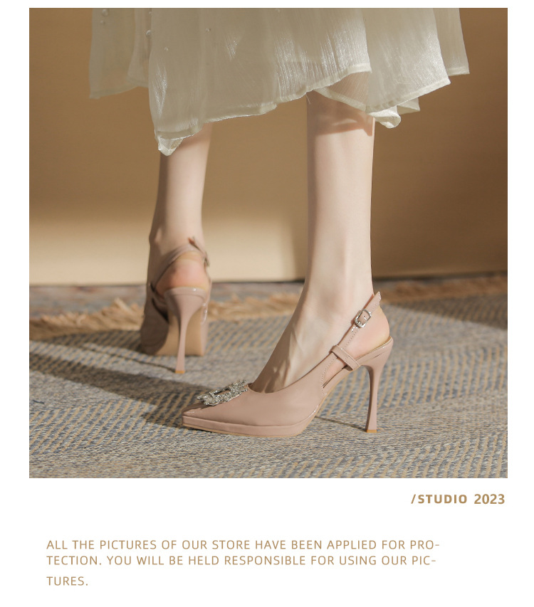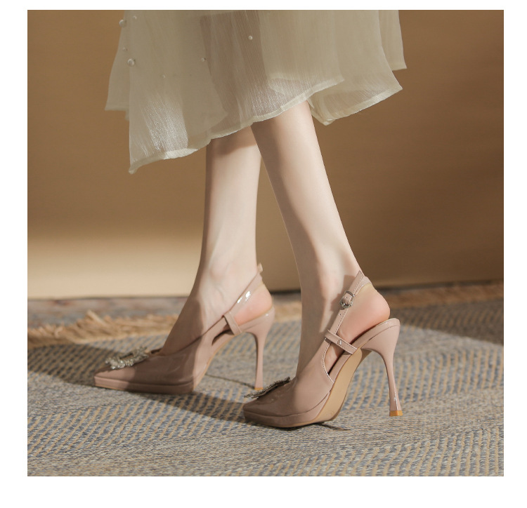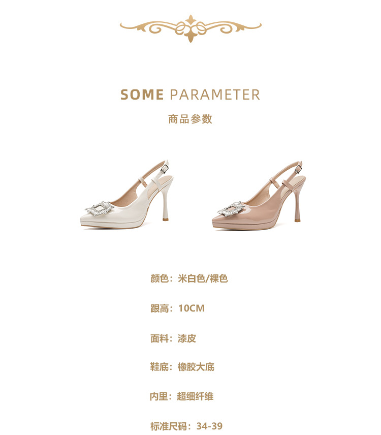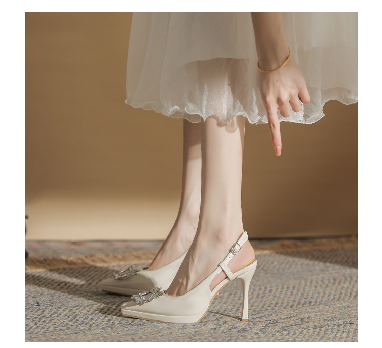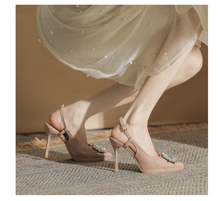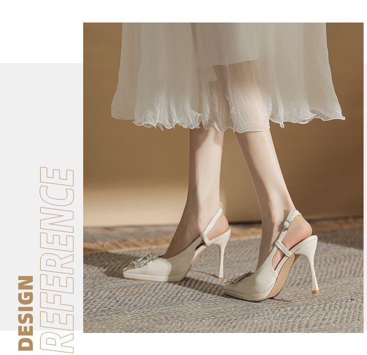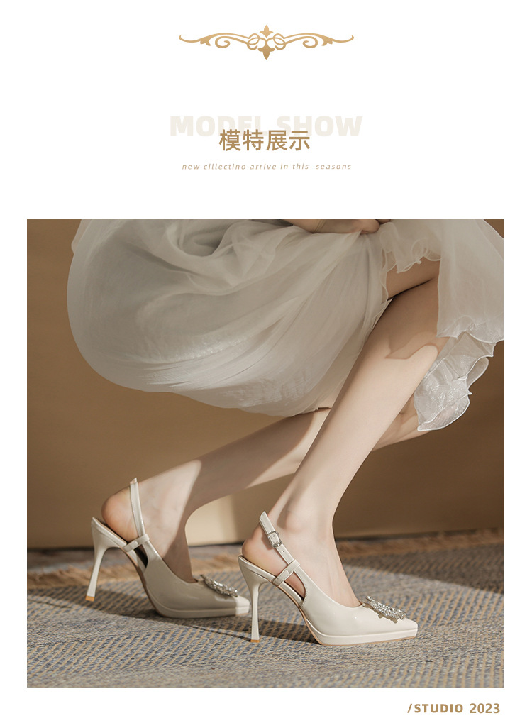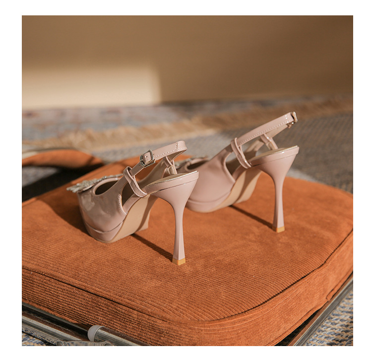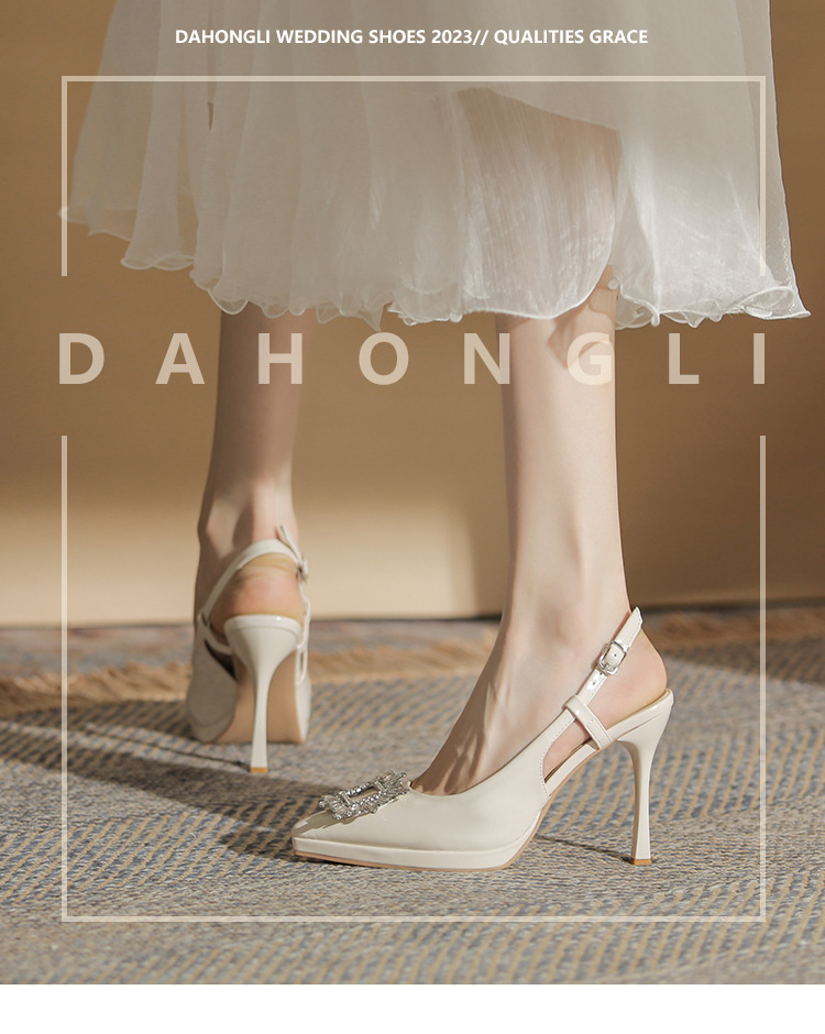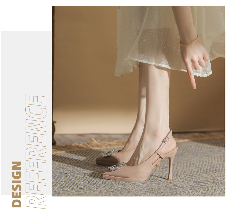108-K36 싱글 슈즈 여성용 2023 새로운 방수 플랫폼 뾰족한 머리 드릴 버클 얕은 탑 Baotou 얇은 굽 뒤 빈 굽 샌들