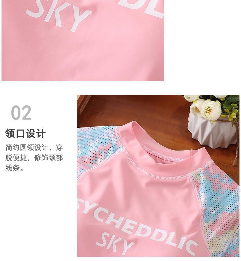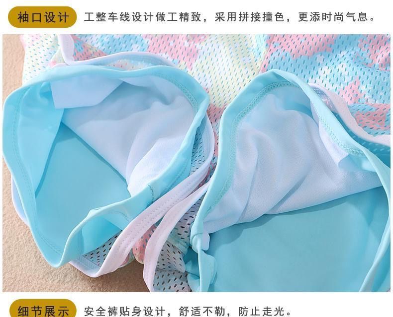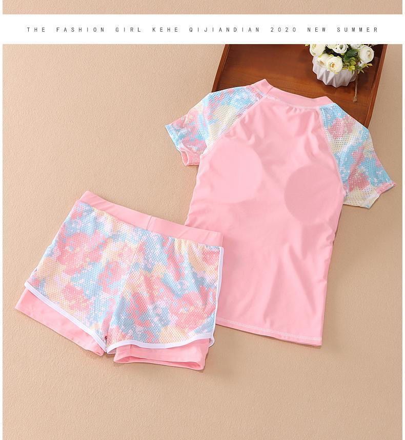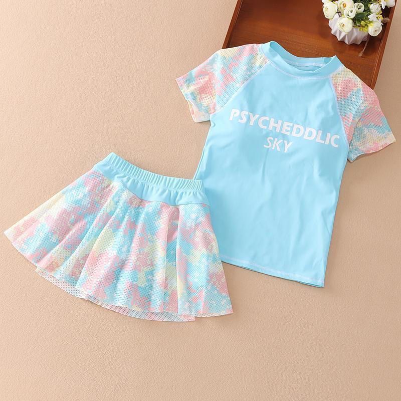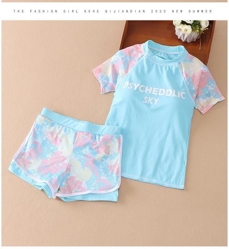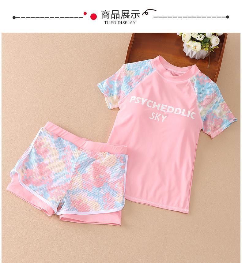 여자 2023 여름 새로운 패션 수영복 메쉬 위장 색상 매칭 스포츠 분할 큰 아이 수영복 세트 중간 아이