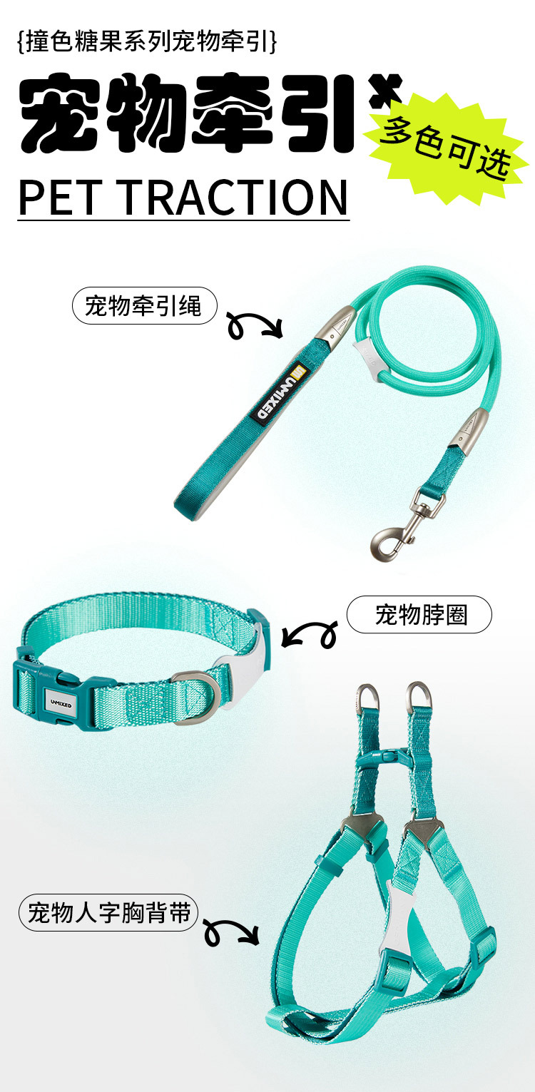 새로운 개 가죽 끈 캔디 대비 색상 시리즈 칼라 가슴과 등 세트 개 가죽 끈 내구성과 강한 애완 동물 용품스토어 가기