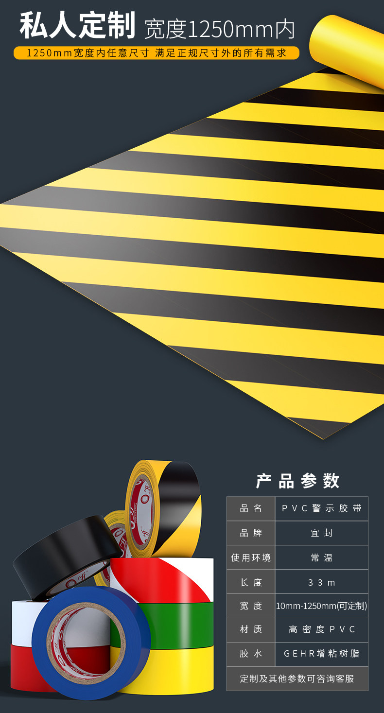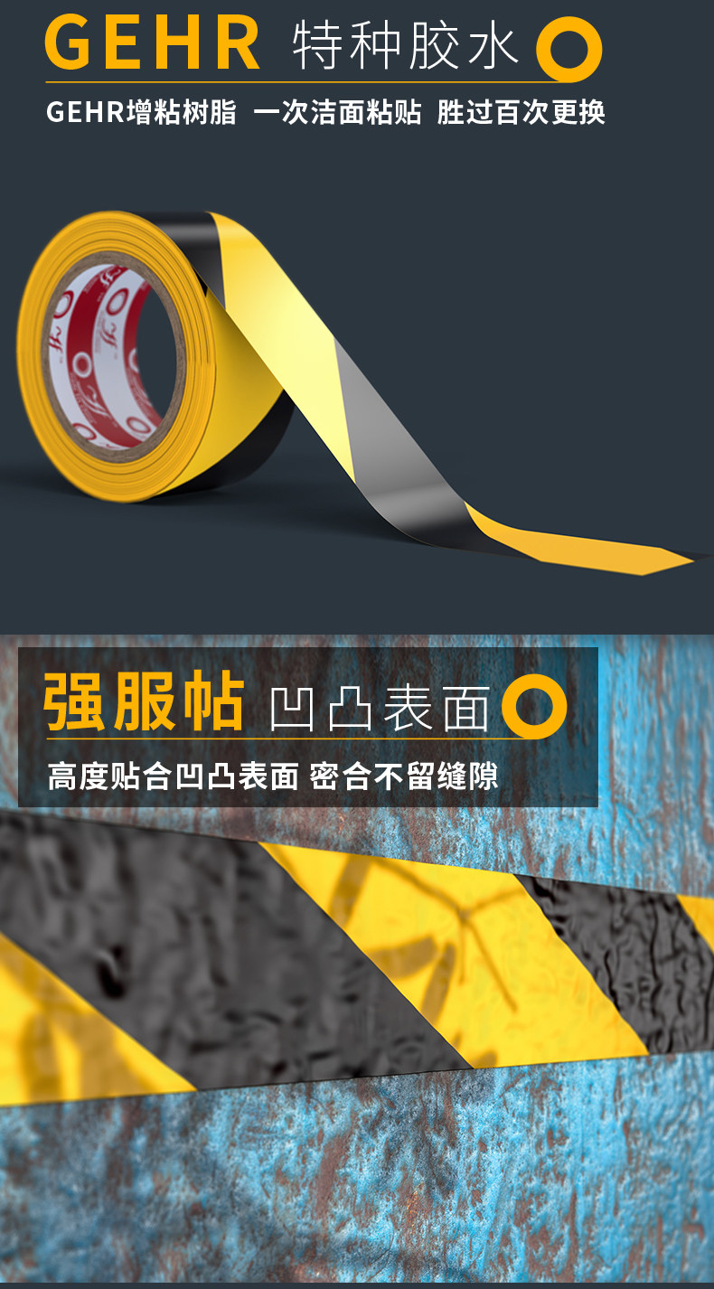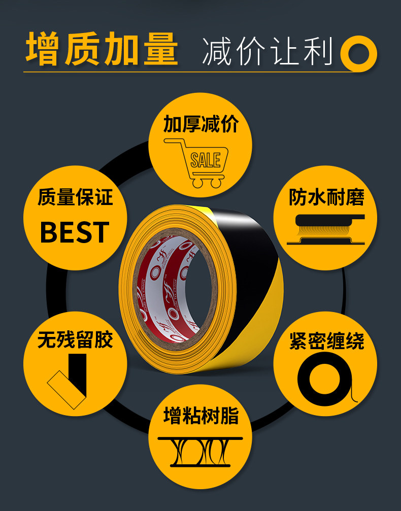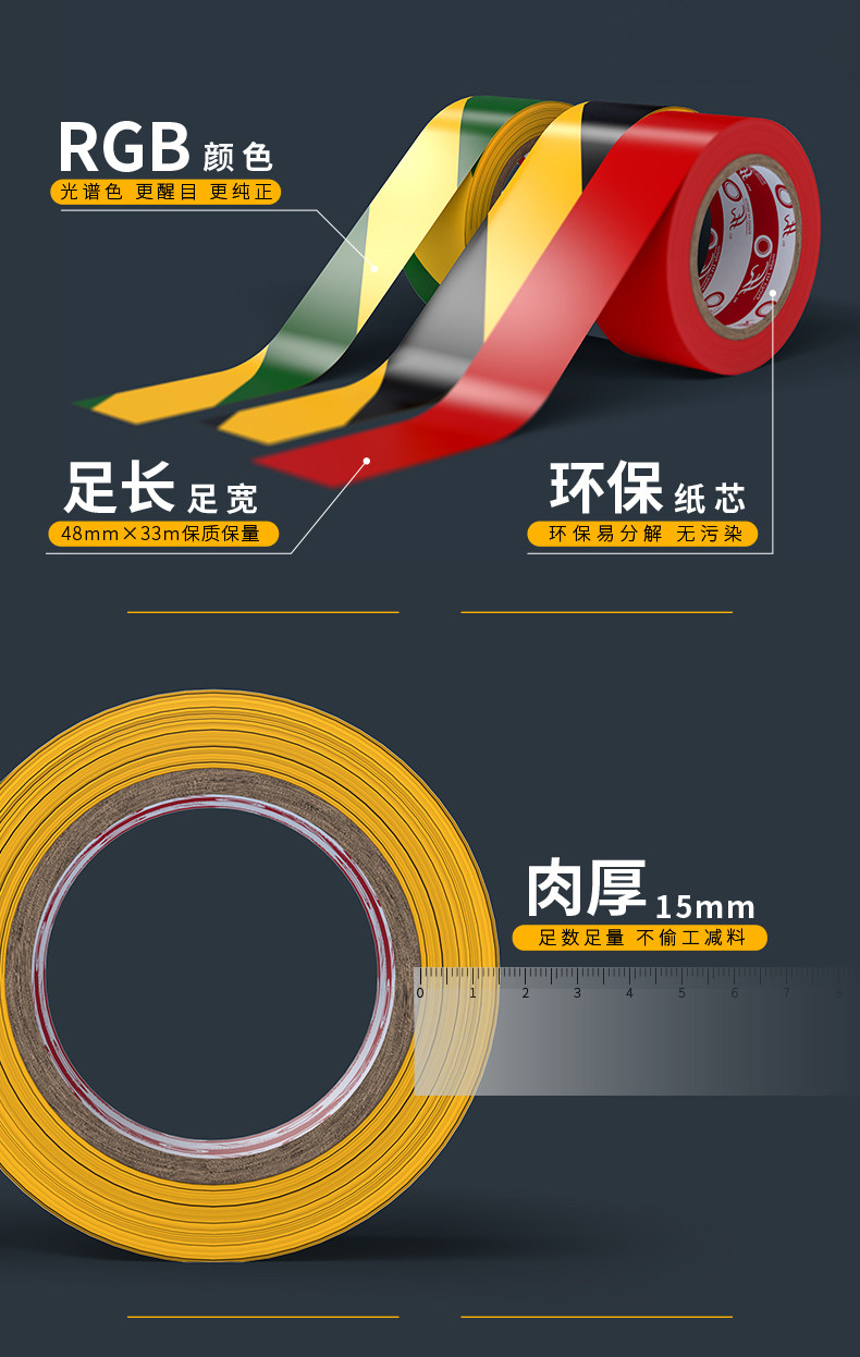 짙은 노란색 PVC 경고 테이프, 고점착 내마모성 노란색-검은색 줄무늬 경고 테이프, 격리 테이프, 화재 안전 라인, 랜드마크스토어 가기
