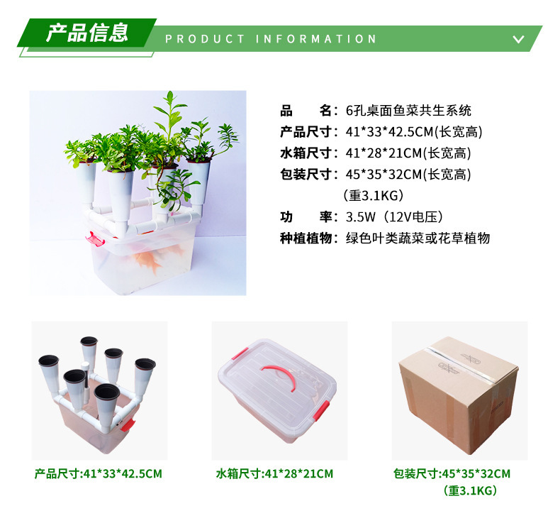 흙 없는 재배기 갯벌 수경 재배 수조 어린이 교육 6 홀 생선과 야채 공생 시스템 장비 야채 재배기스토어 가기
