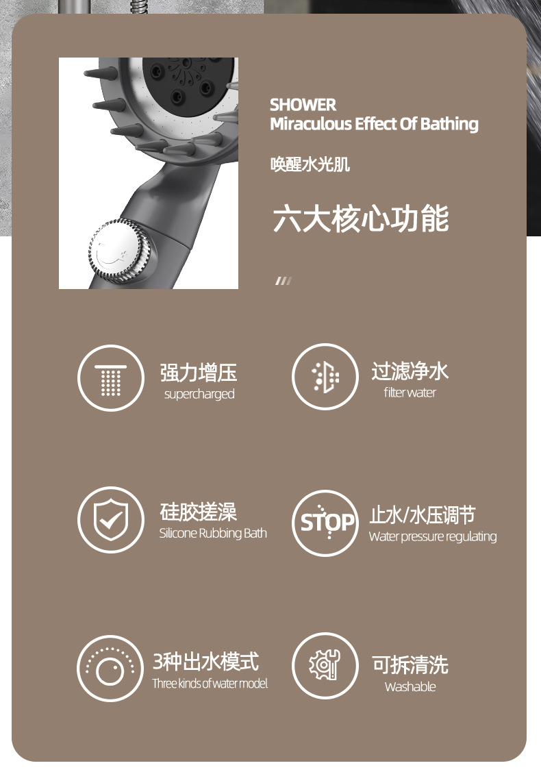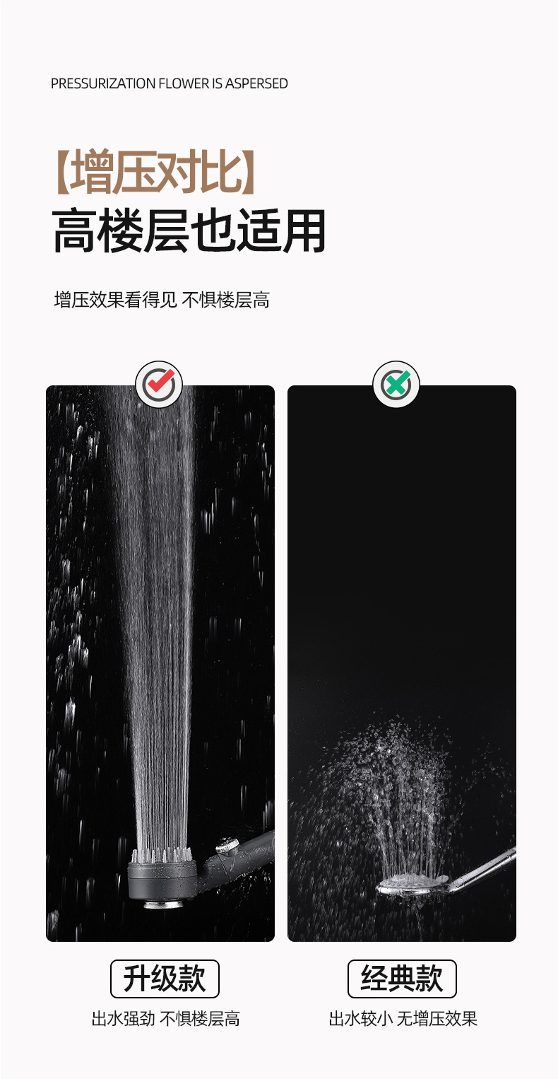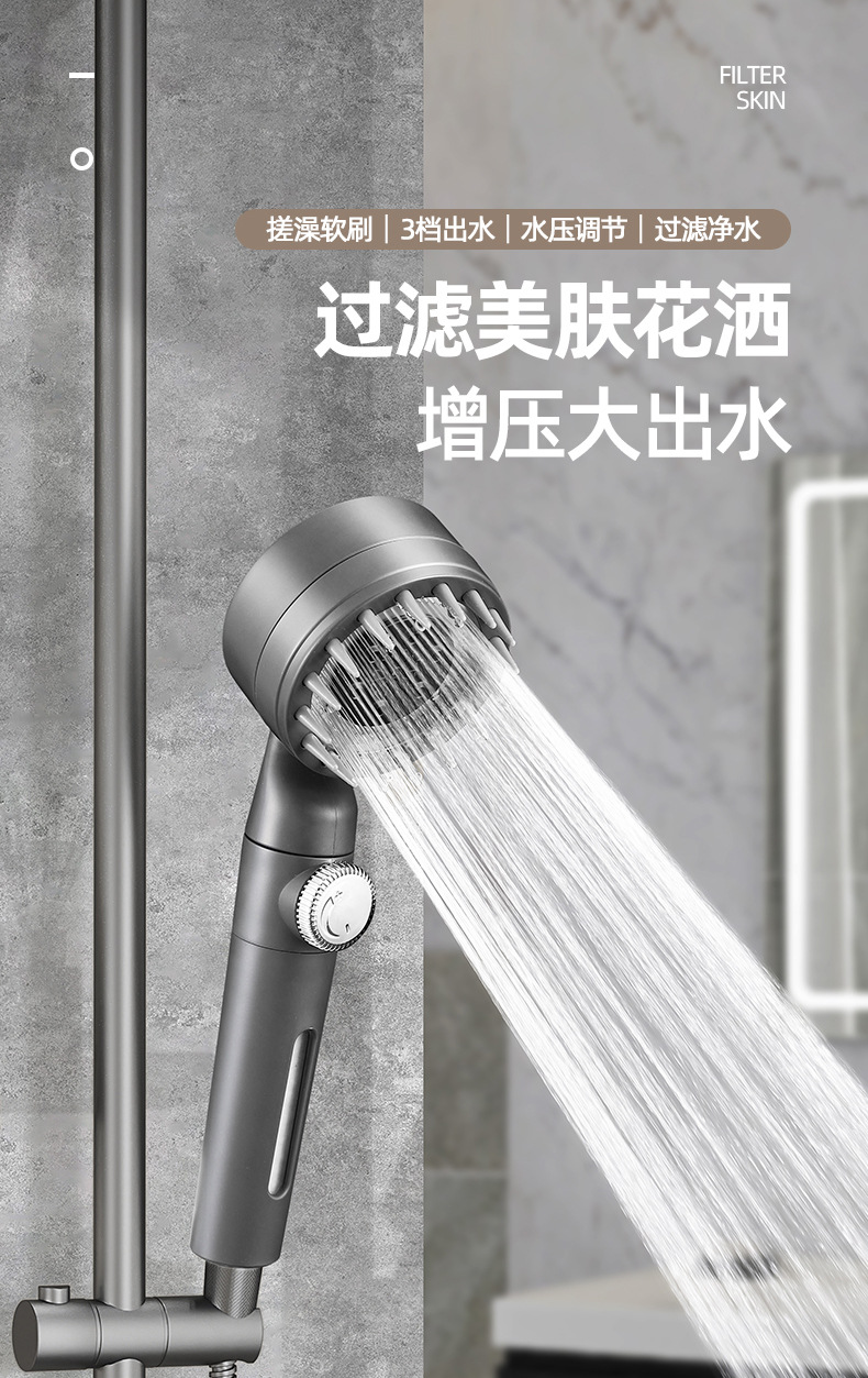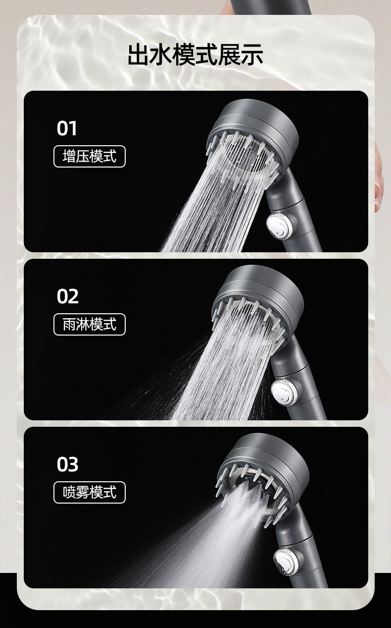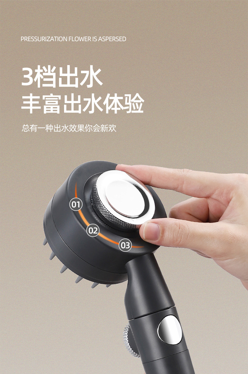 인터넷 유명인들이 사용하는 강력한 가압 미용 샤워기, 3단계 스프레이 마사지 핸드헬드 샤워기, 레인 샤워기