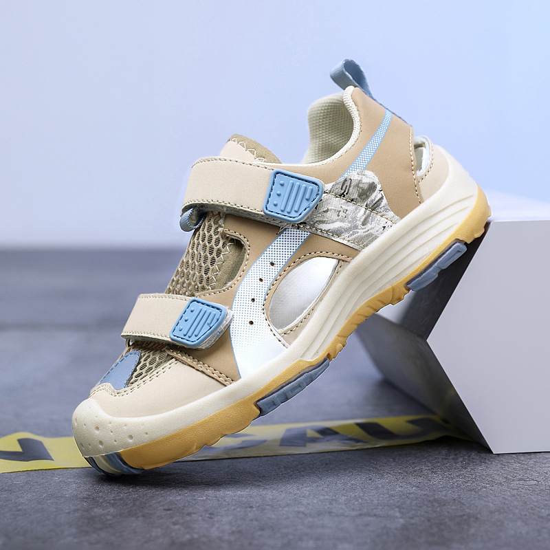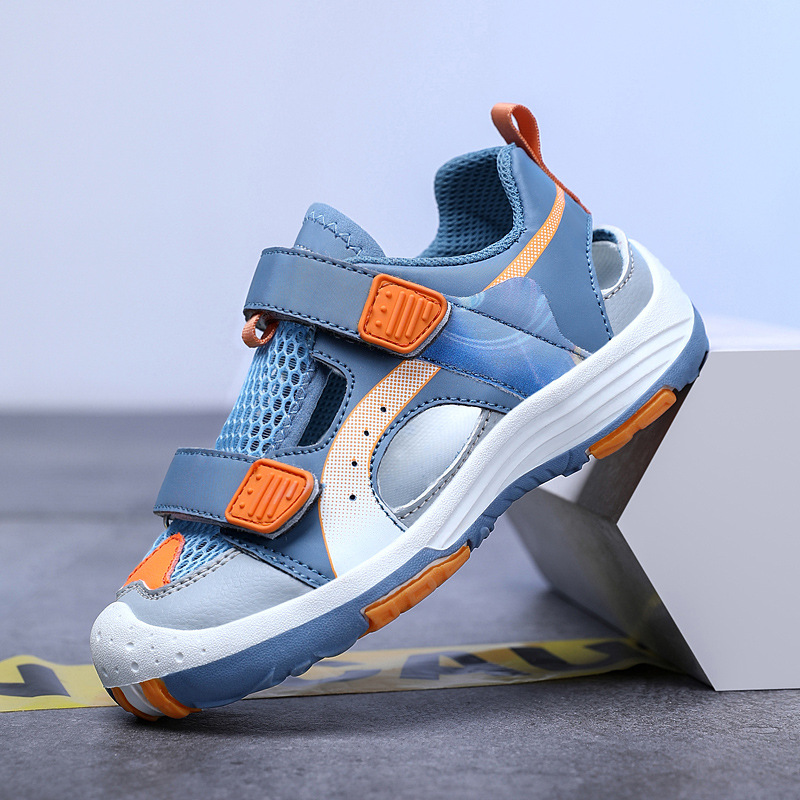 어린이 샌들 2023 여름 새 소년 중공 벨크로 스포츠 샌들 소형, 중형 및 대형 어린이 비치 신발