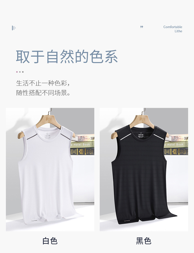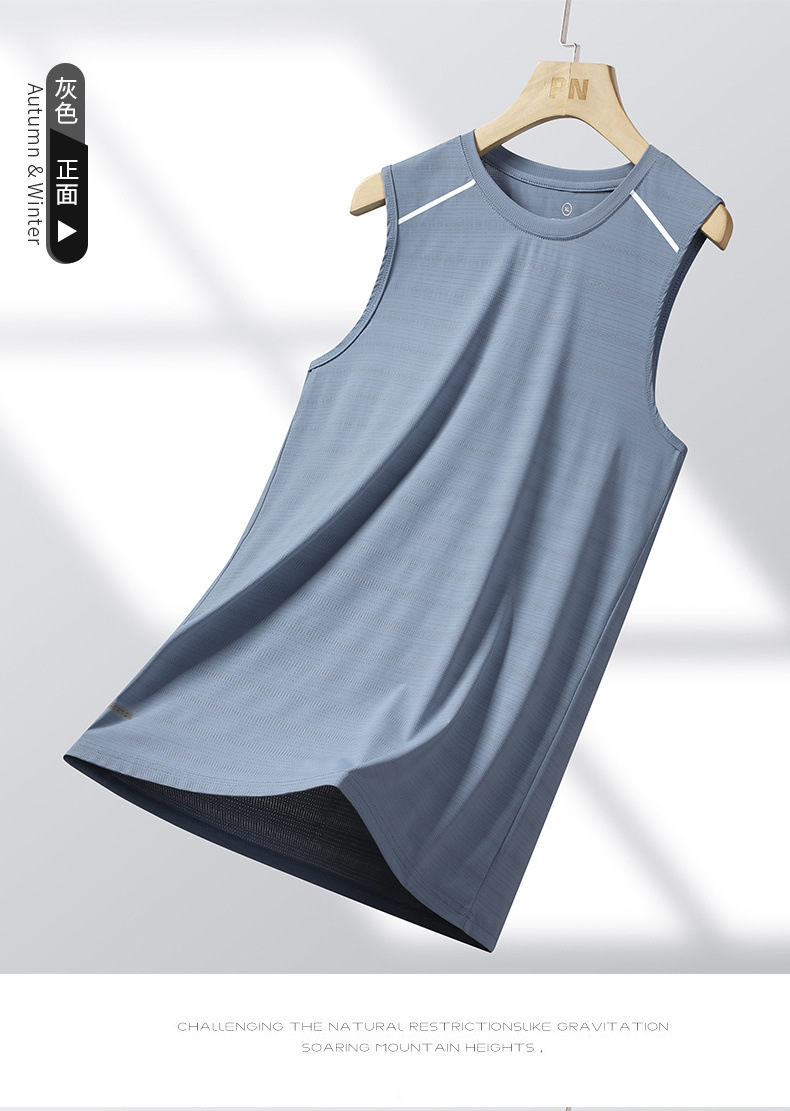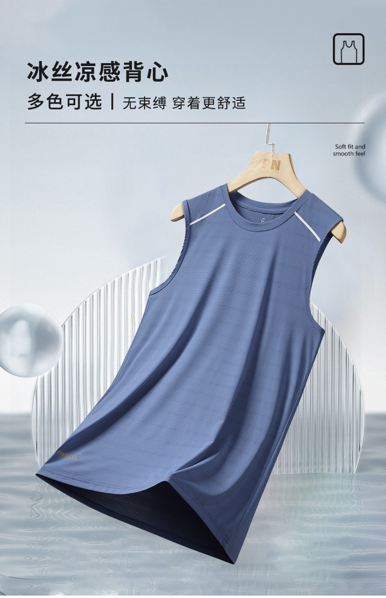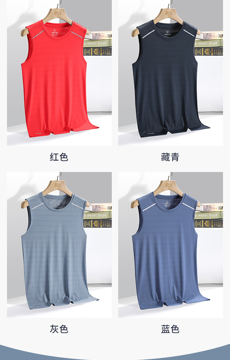 2024 여름 새로운 남자의 얼음 실크 조끼 느슨한 대형 야외 스포츠 양복 조끼 남자의 빠른 건조 조끼 거리 매점 도매스토어 가기