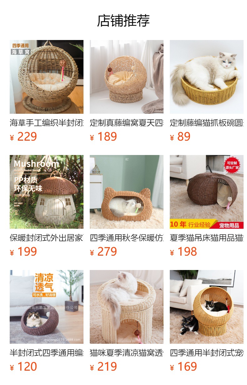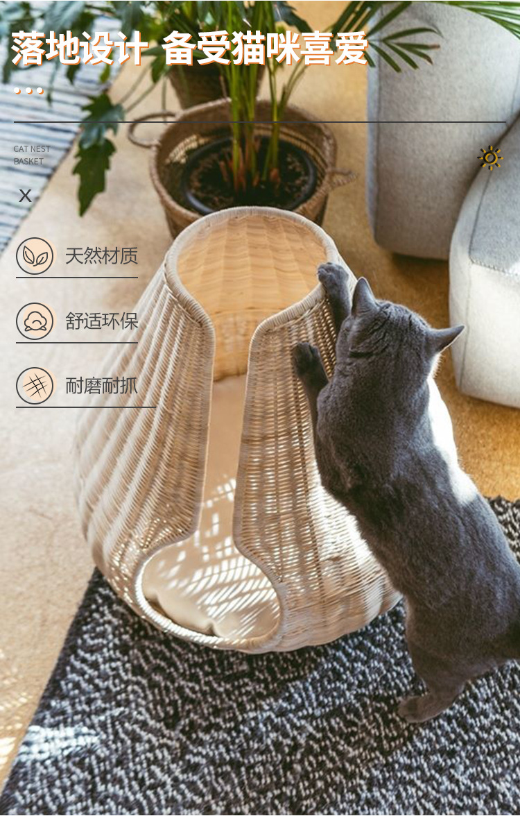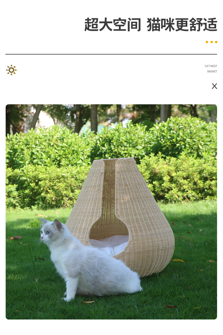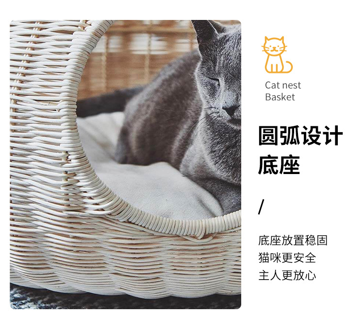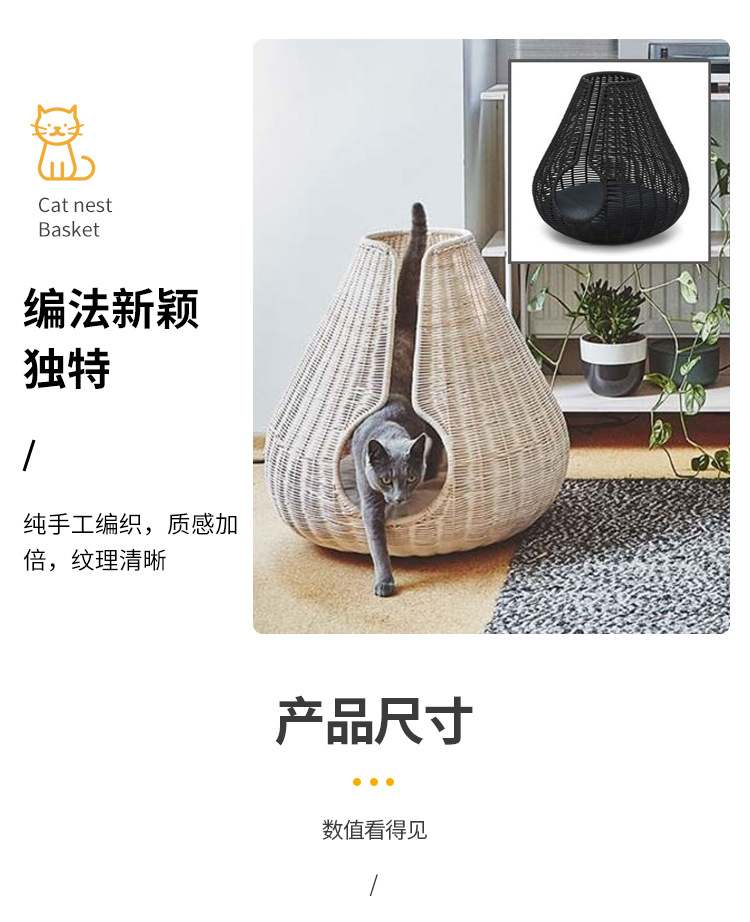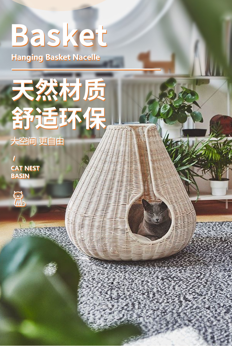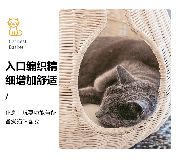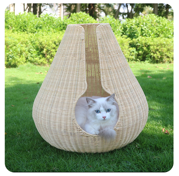 가을과 겨울을위한 수제 짠 따뜻한 애완 동물 둥지 닫힌 고양이 침대 집 고양이 용품 등나무 짠 고양이 둥지