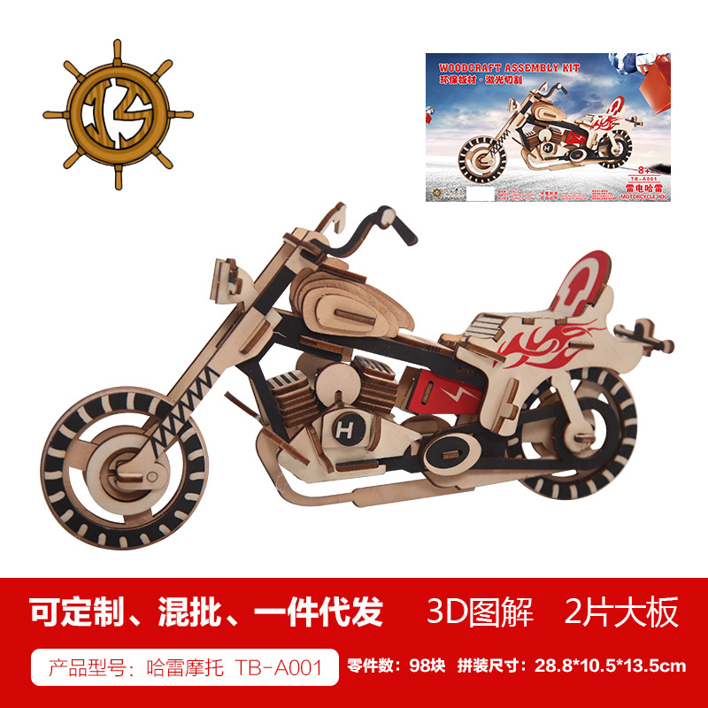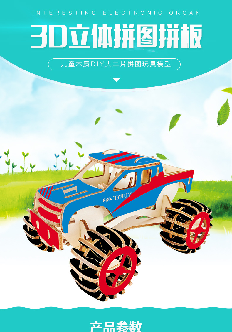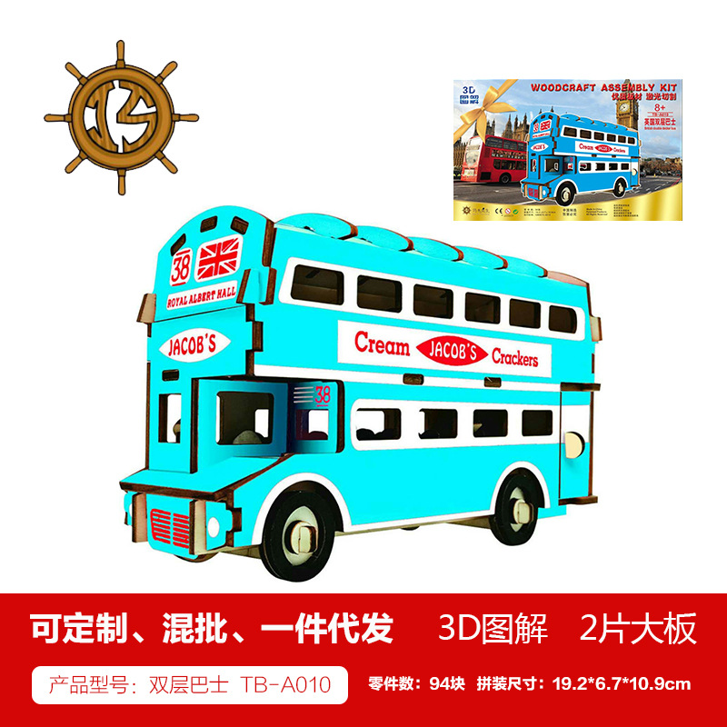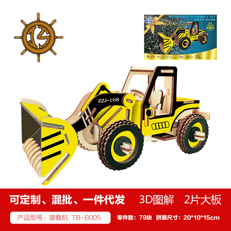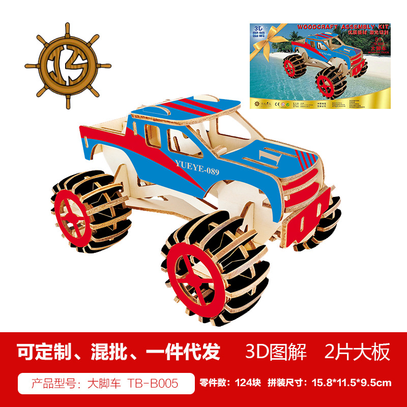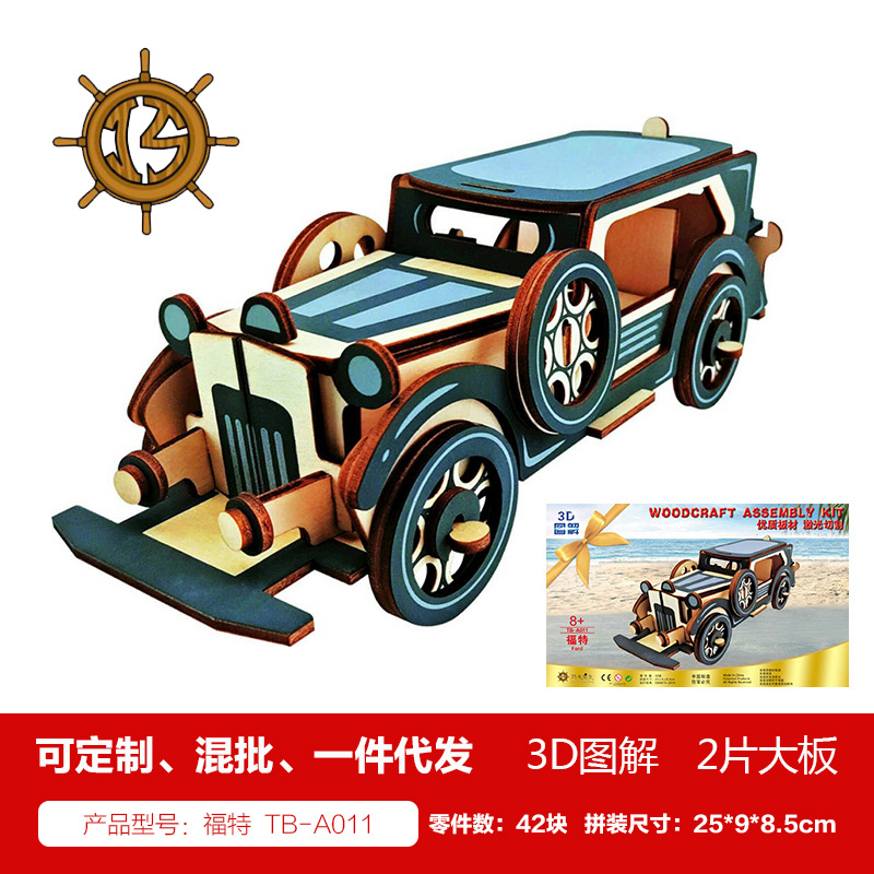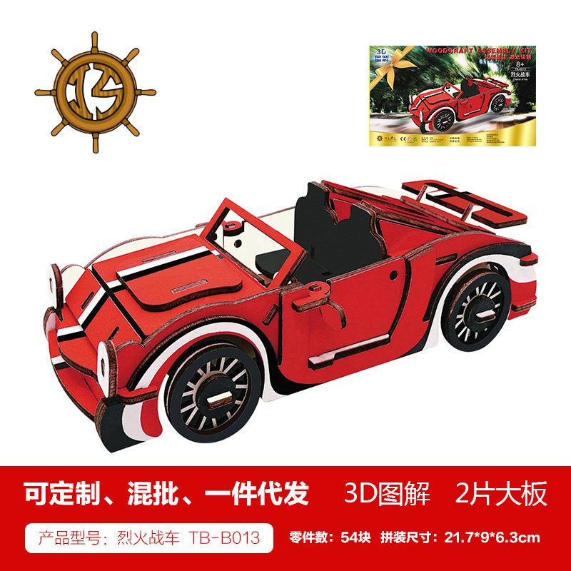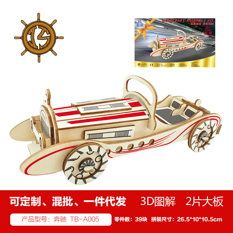 새해 어린이용 나무 입체 3D 퍼즐 자동차 모델 장식품 유치원 수제 퍼즐 블록 선물 상자스토어 가기