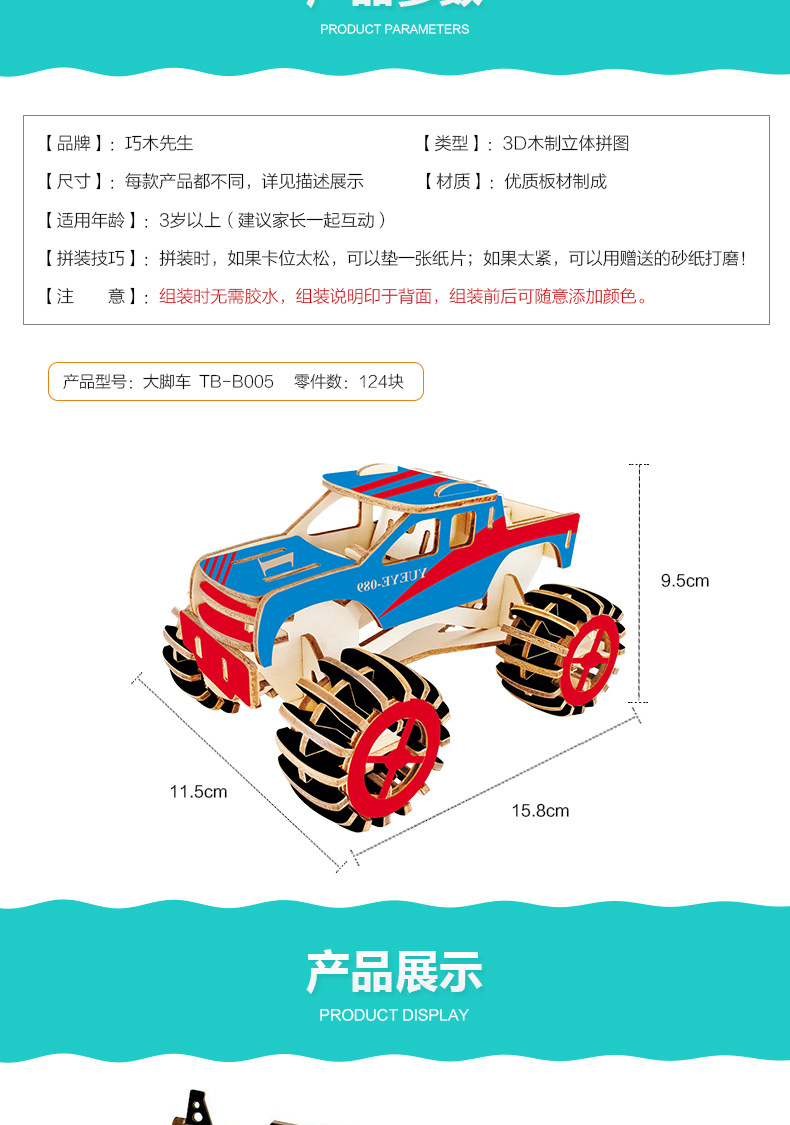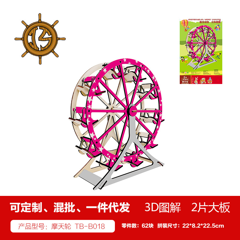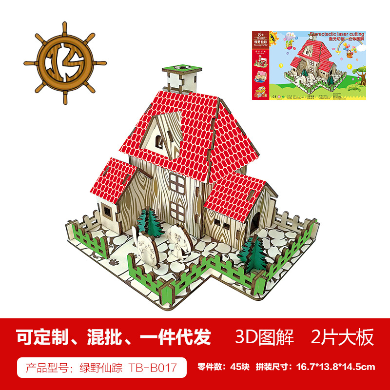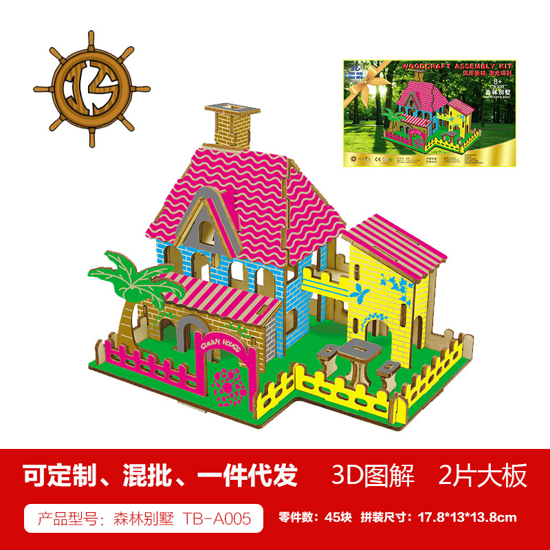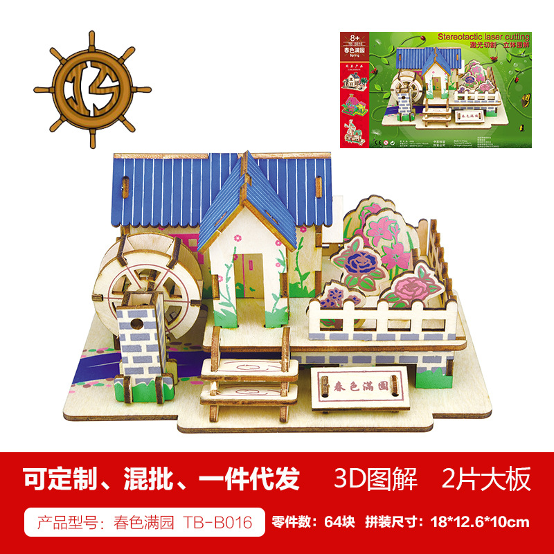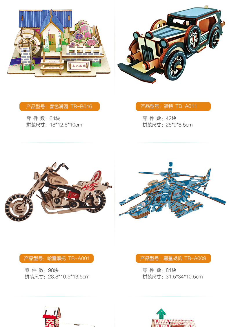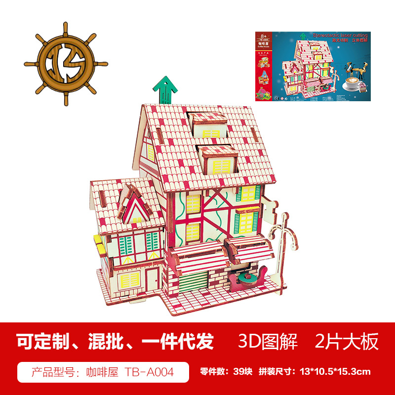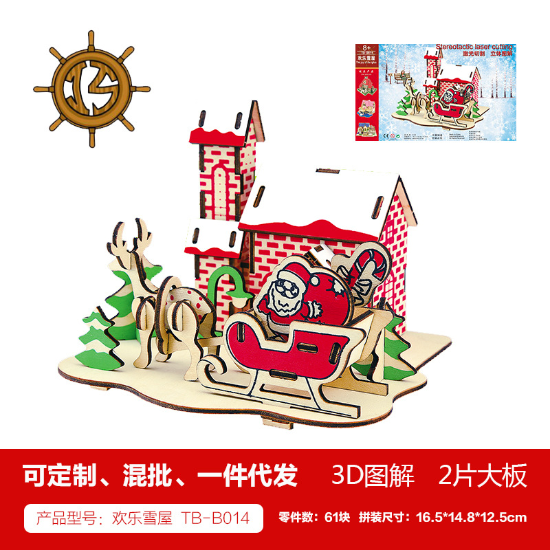 새해 어린이용 나무 입체 3D 퍼즐 자동차 모델 장식품 유치원 수제 퍼즐 블록 선물 상자스토어 가기