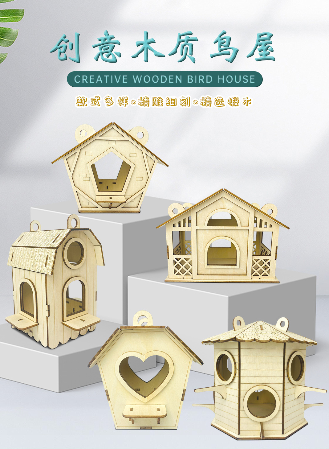 공장 직접 목조 야외 새 집 수제 DIY 낙서 새 둥지 3D 나무 새 집 창조적 인 새 새장 장식품