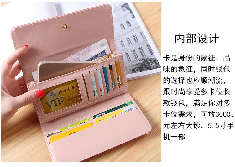 새 지갑 여성용 대용량 클러치 백 휴대 전화 가방 학생 동전 지갑 패션 긴 여성용 가죽 클램프 백 카드 가방스토어 가기