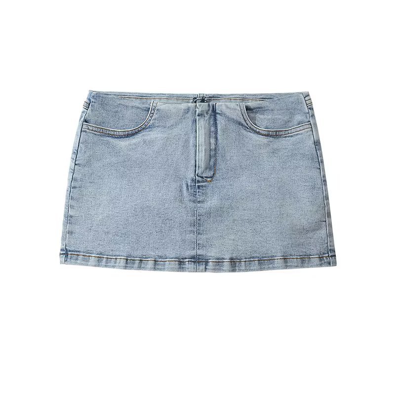 유럽과 미국 스타일 여름 새로운 낮은 허리 그물 버전 간단한 단색 데님 치마 엉덩이 치마 안티 슬립 작은 치마스토어 가기
