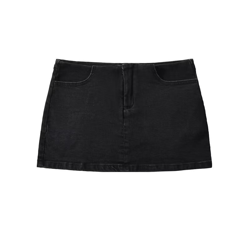 유럽과 미국 스타일 여름 새로운 낮은 허리 그물 버전 간단한 단색 데님 치마 엉덩이 치마 안티 슬립 작은 치마
