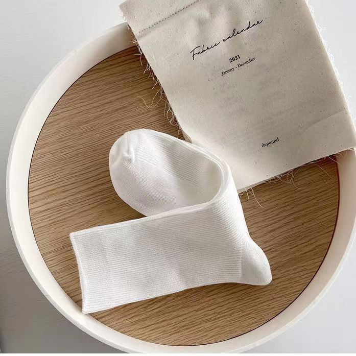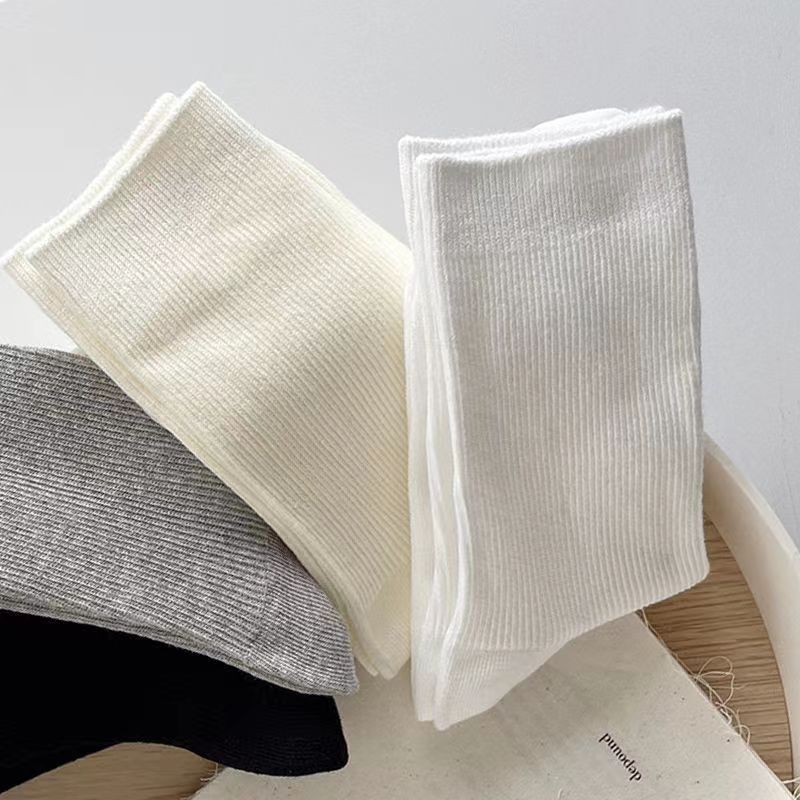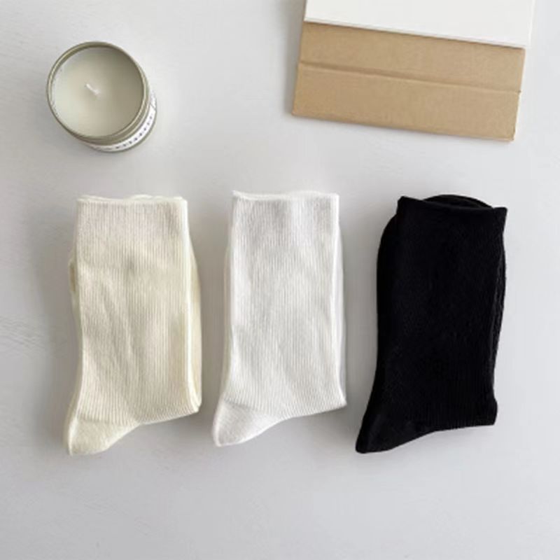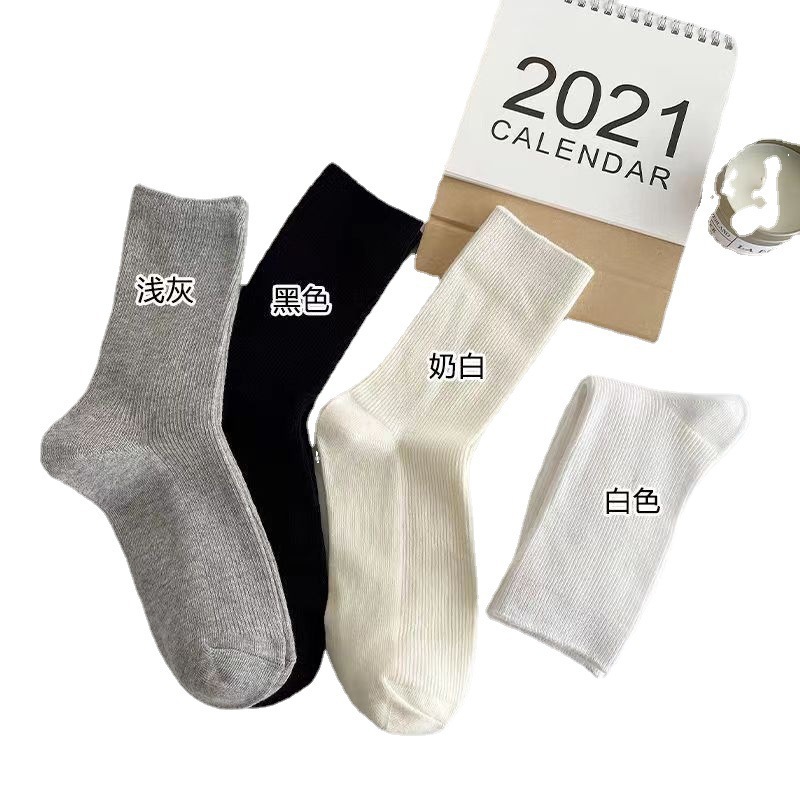 봄과 여름 밀크 화이트 JK 양말 여성용 중간 길이 양말 스택 단색 통기성 일본 모든 매치 블랙 새 여성 양말