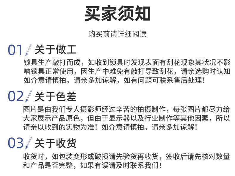 默认发:白盒包装,一把锁配3片钥匙,不通开。无牌!无牌!无牌!
