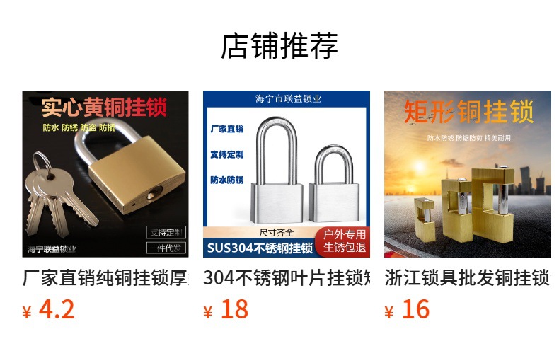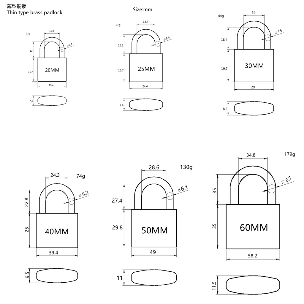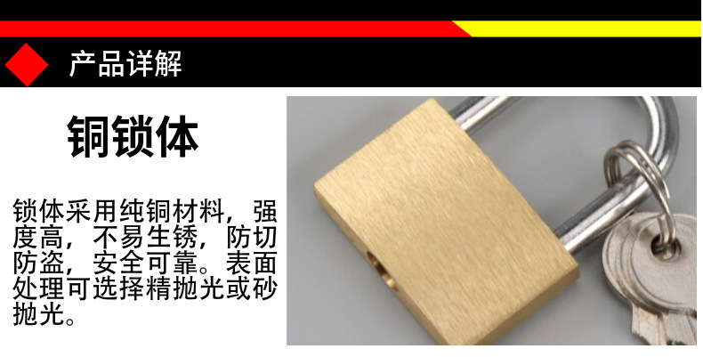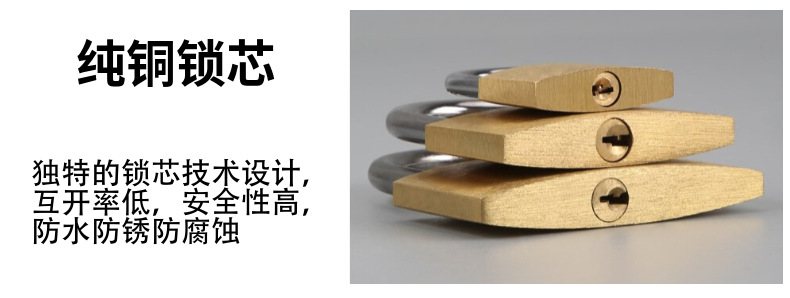 材质:铜锁体,铜锁芯,A3钢锁梁,铁钥匙