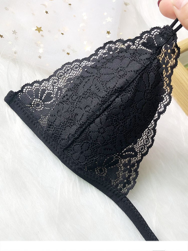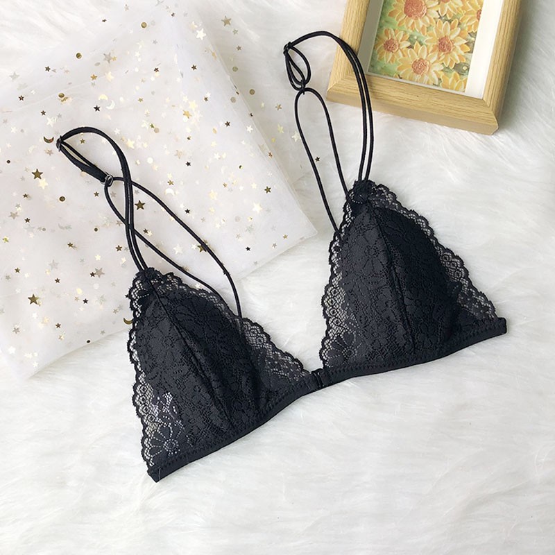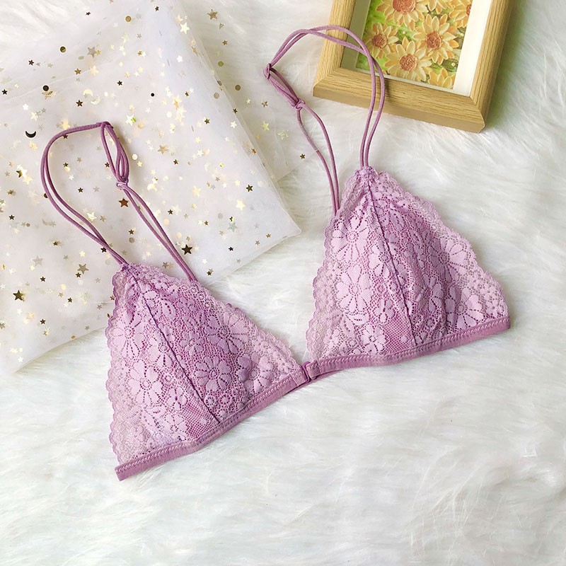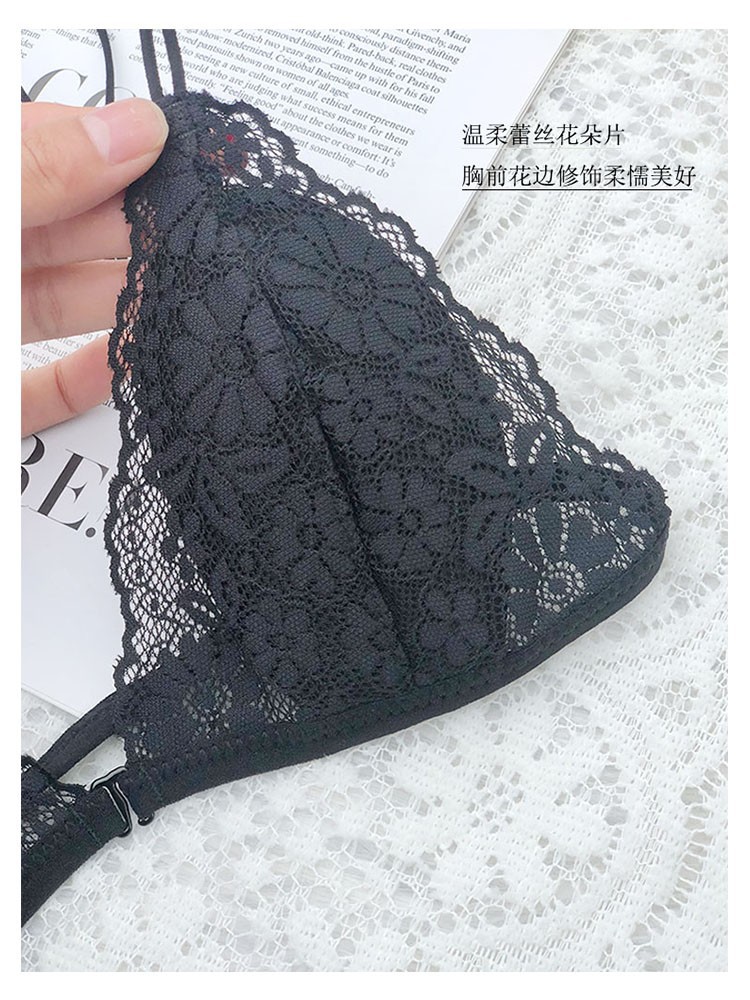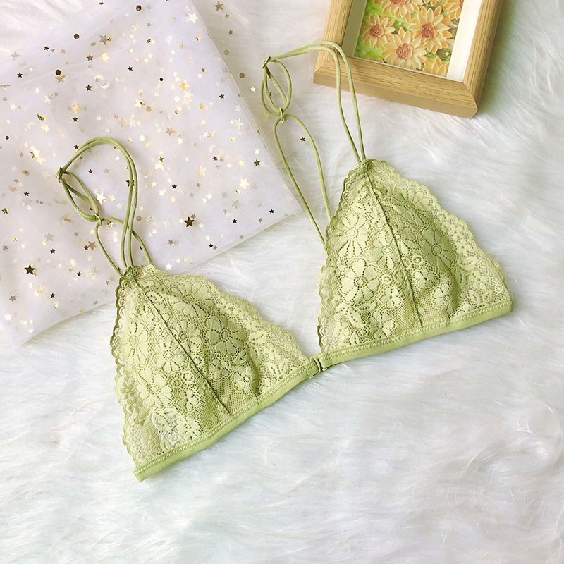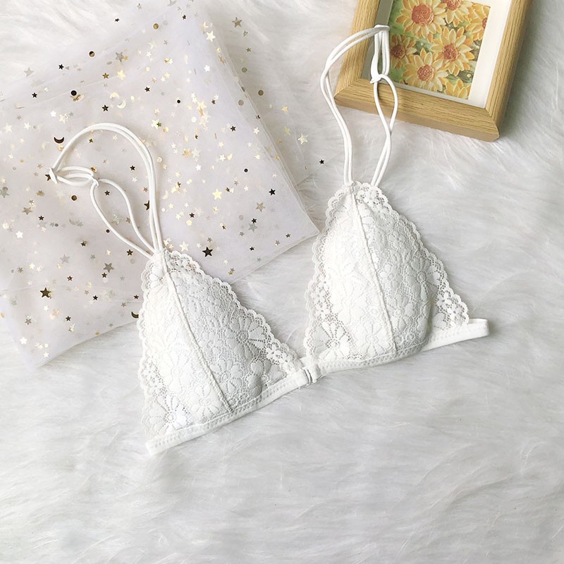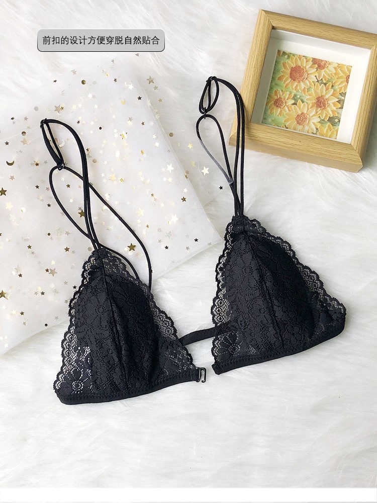 프랑스 스타일 속옷 여성용 앞 버클 삼각형 컵 얇은 벨트 아름다운 뒤 얇은 강철 반지 레이스 여름 여성을위한 섹시한 순수한 욕망 브래지어스토어 가기