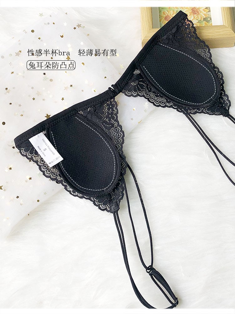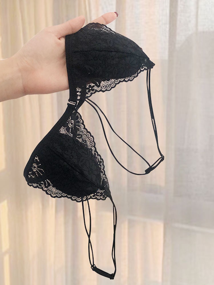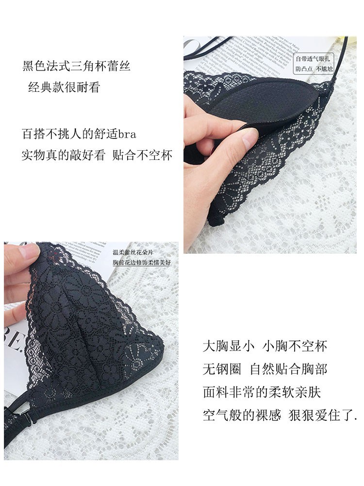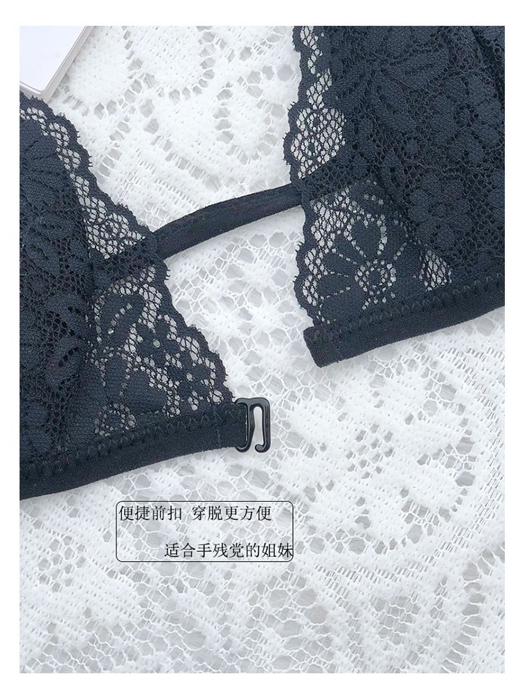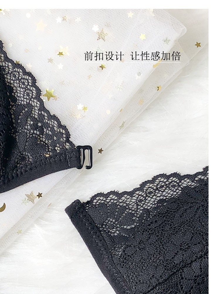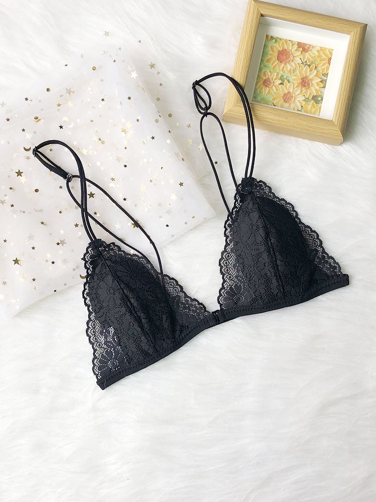 프랑스 스타일 속옷 여성용 앞 버클 삼각형 컵 얇은 벨트 아름다운 뒤 얇은 강철 반지 레이스 여름 여성을위한 섹시한 순수한 욕망 브래지어스토어 가기