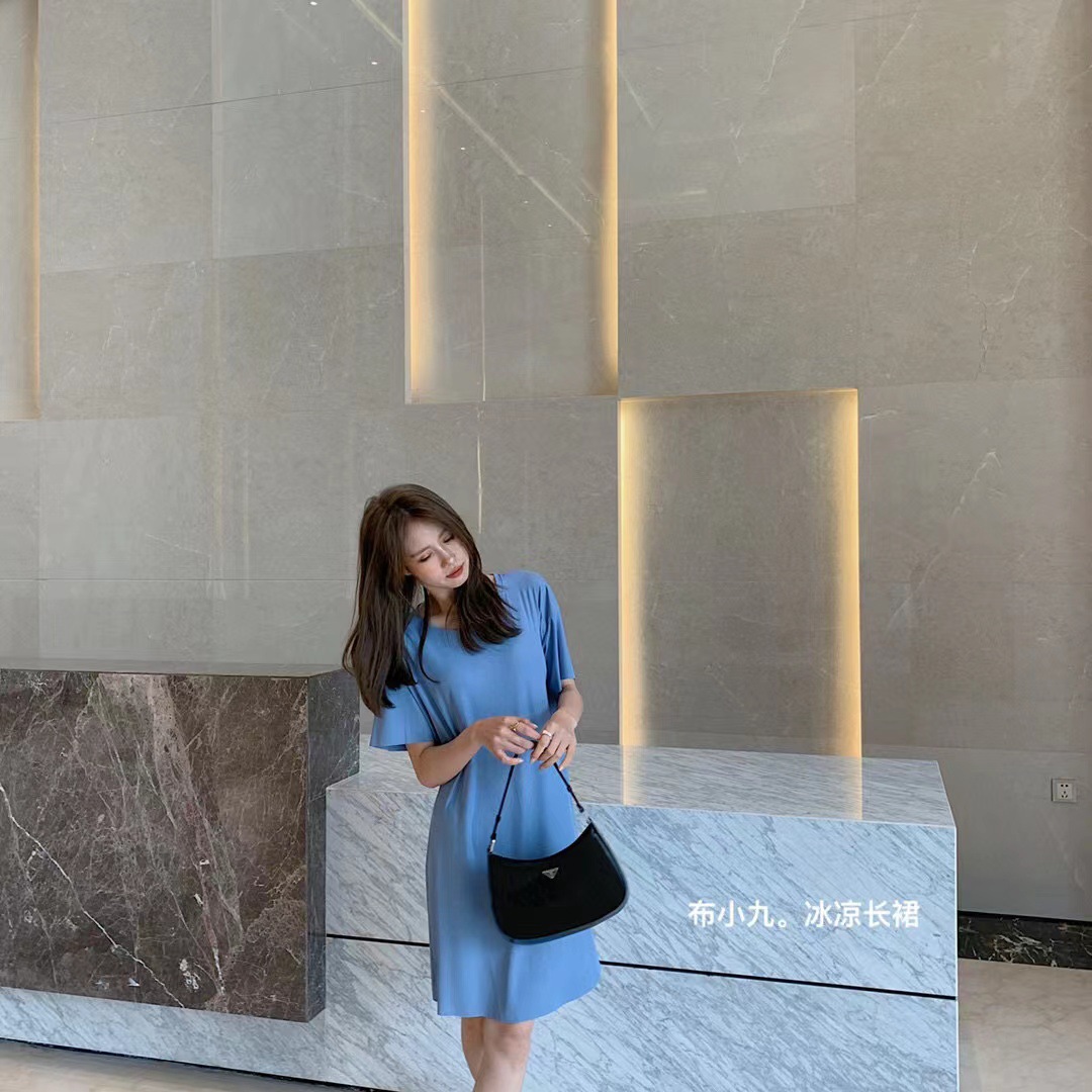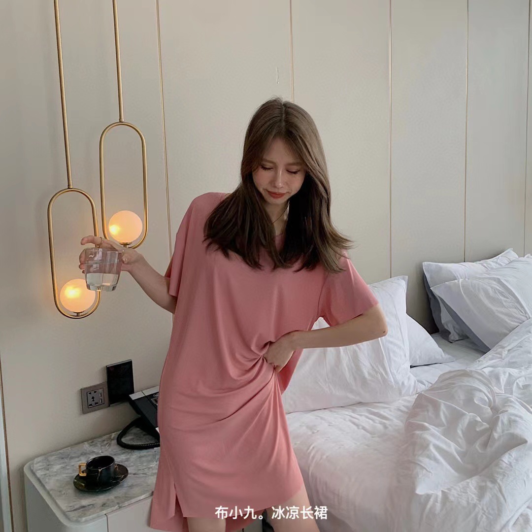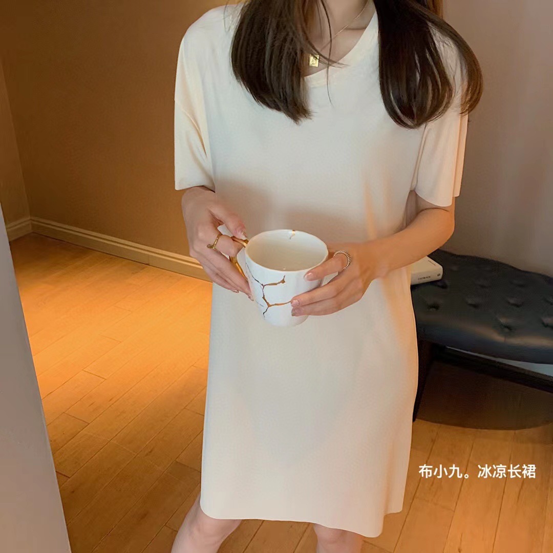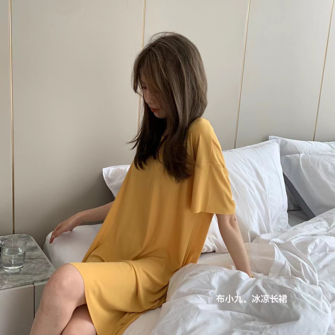 얼음 실크 쿨 스커트 여름 새로운 패션 여성 잠옷 기질 드레스 느슨한 학생 중간 길이 스커트스토어 가기