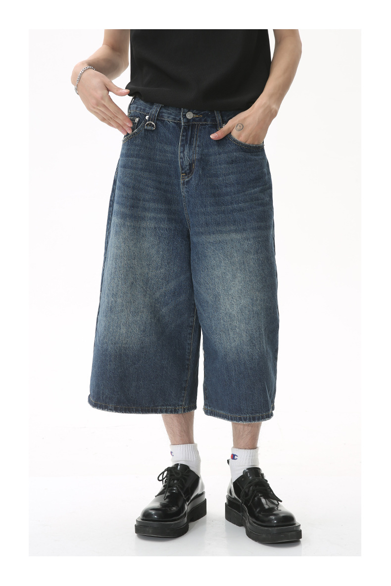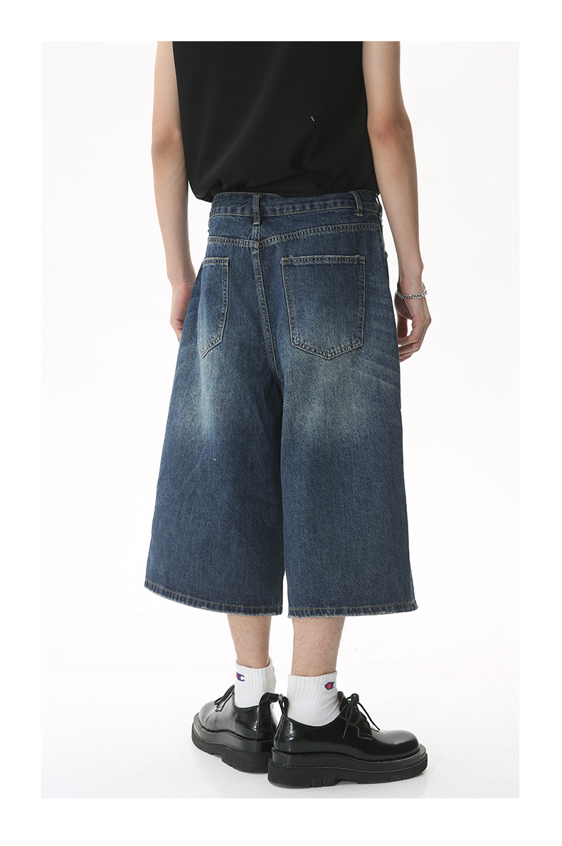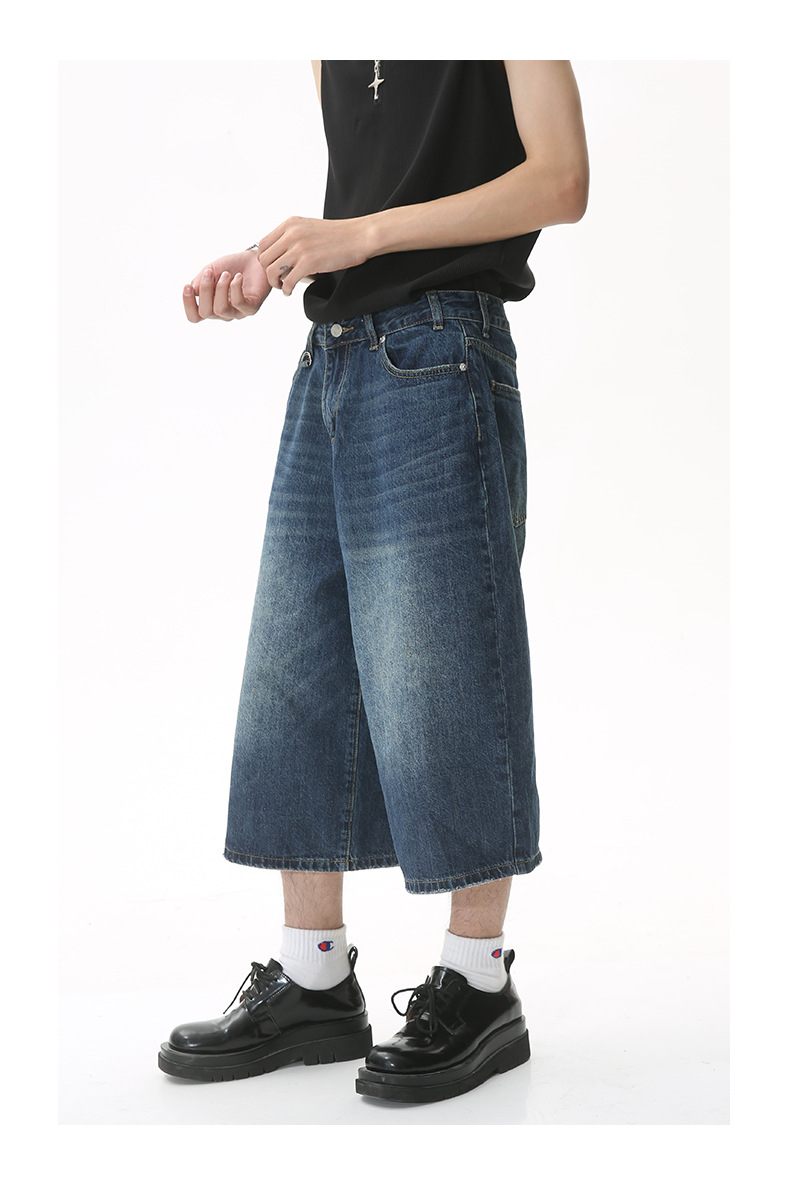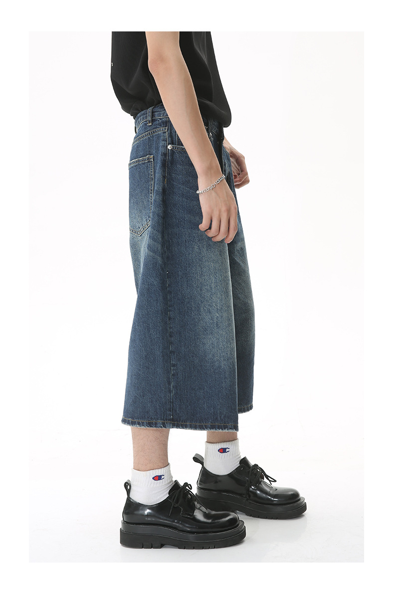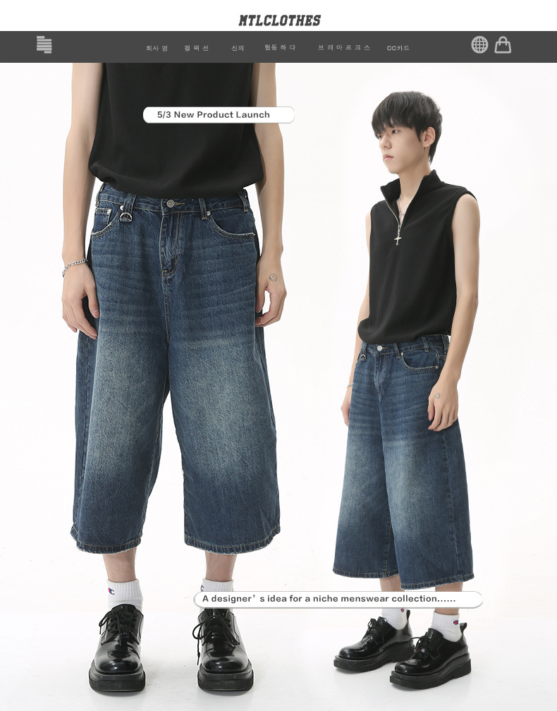 MTLCLOTHES 남성복 | 한국 스타일 멀티 컬러 워싱 홍콩풍 와이드 레그 플레어 워싱 데님 7부 청바지 트렌디스토어 가기