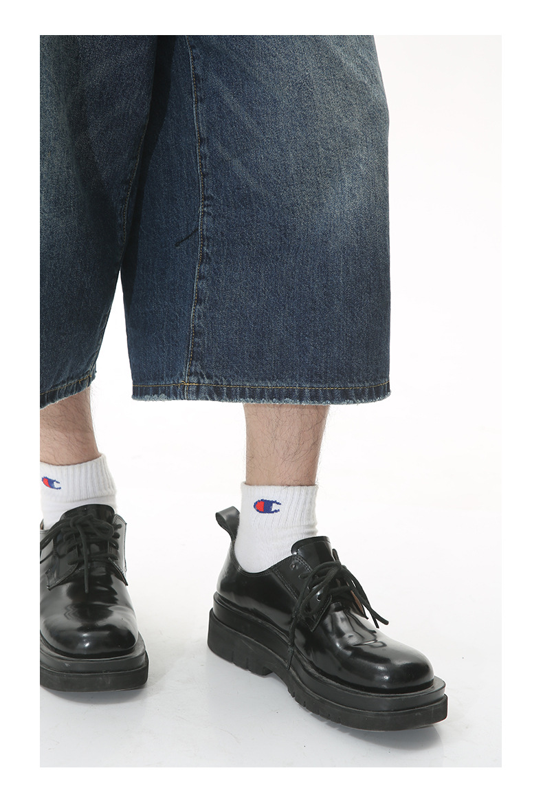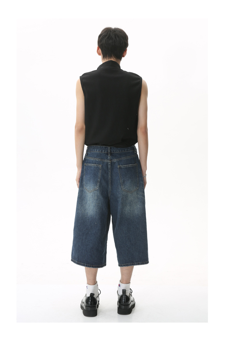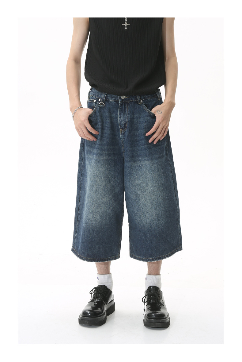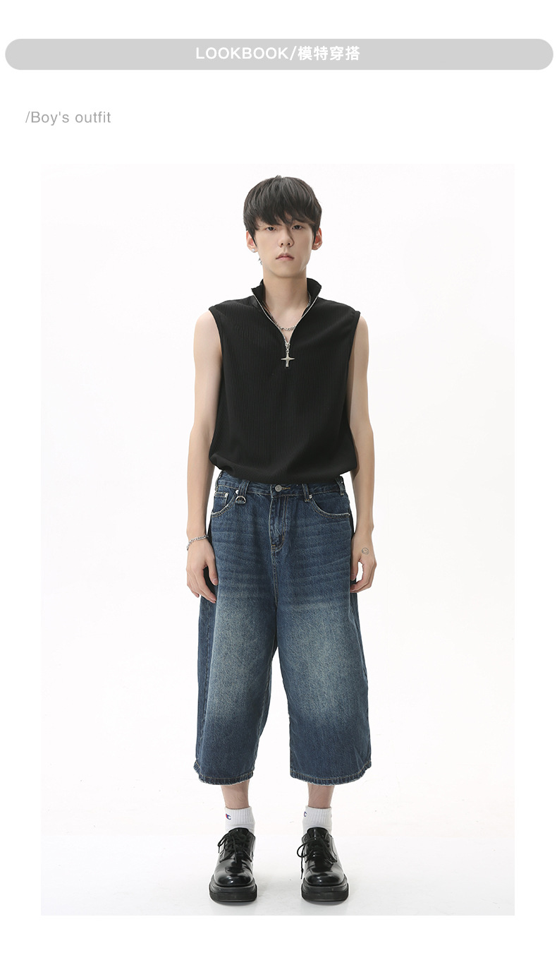MTLCLOTHES 남성복 | 한국 스타일 멀티 컬러 워싱 홍콩풍 와이드 레그 플레어 워싱 데님 7부 청바지 트렌디스토어 가기