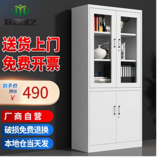 钢制文件柜办公柜 加厚带锁铁皮资料柜玻璃门储物柜送货上门
