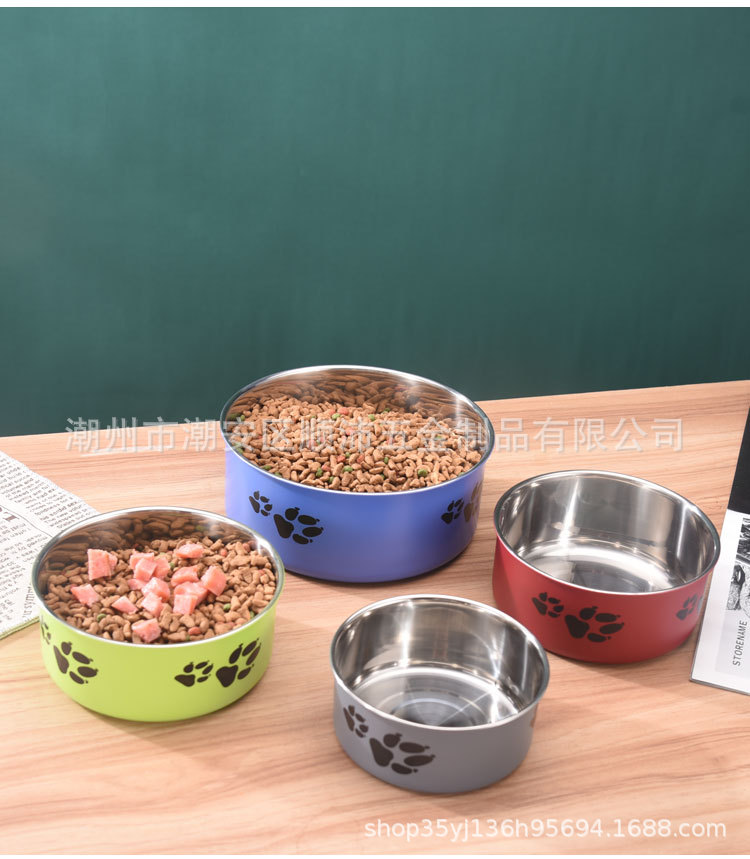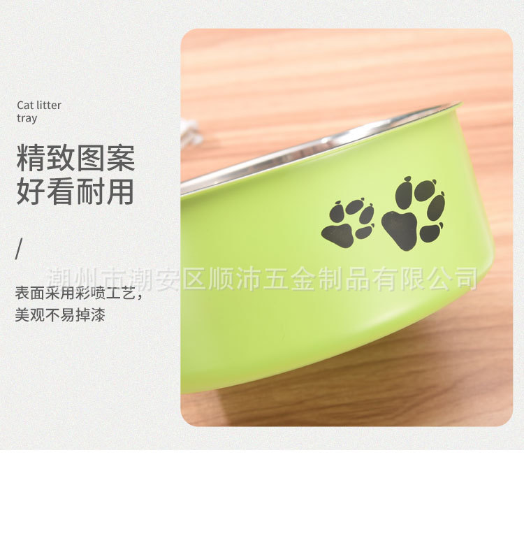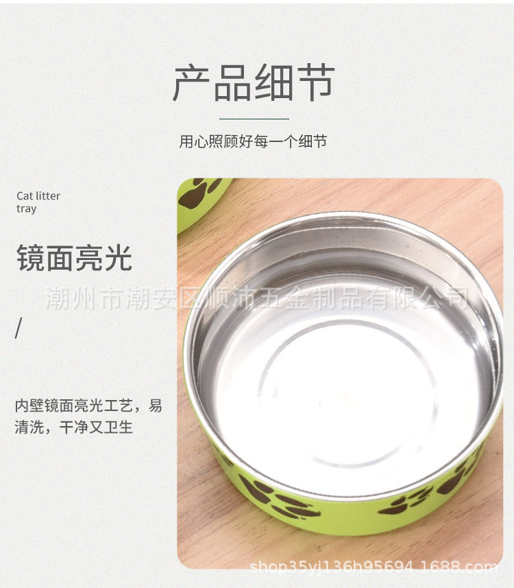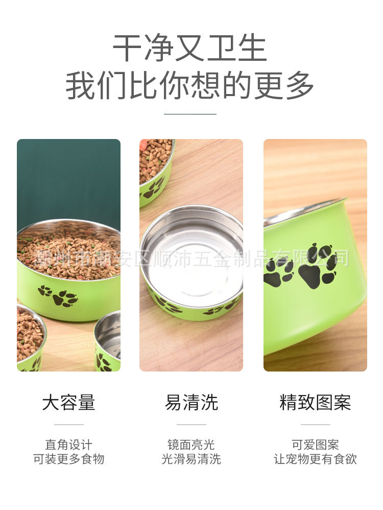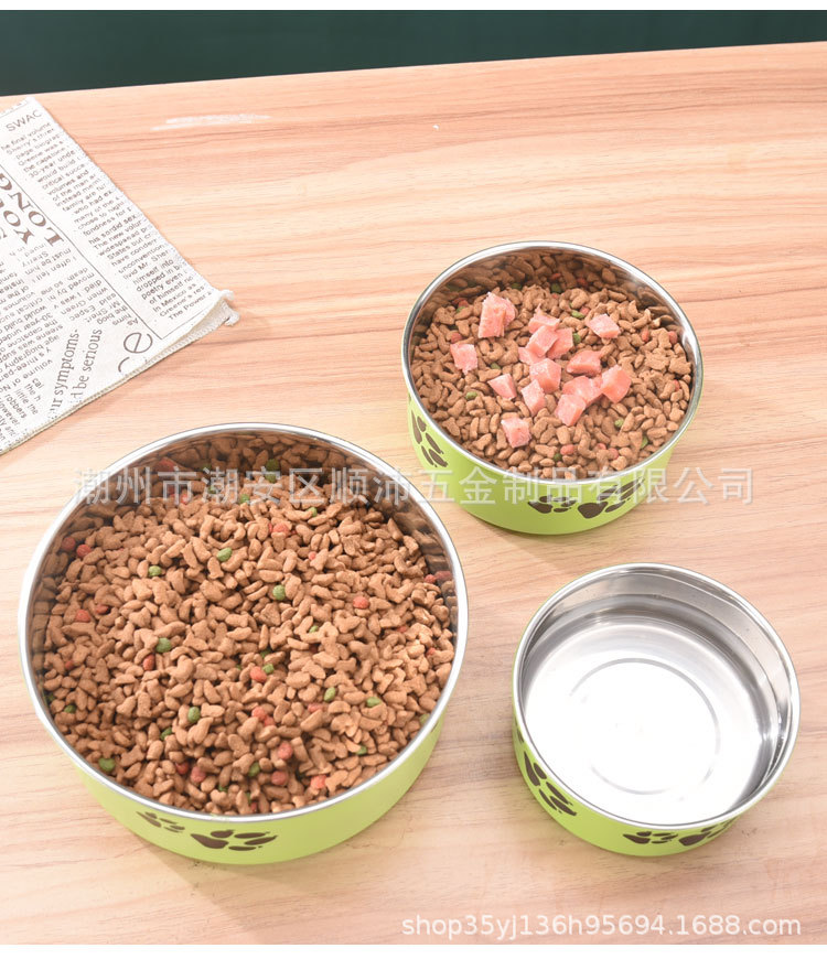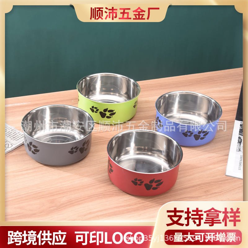 대외 무역 컬러 스테인레스 스틸 애완 동물 분지 도매 개 용품 피더 만화 고양이 사료 그릇 컬링 인쇄 개 그릇