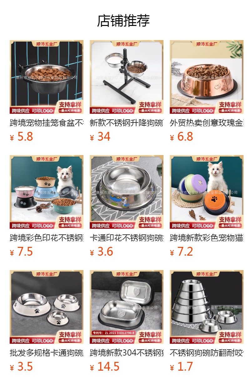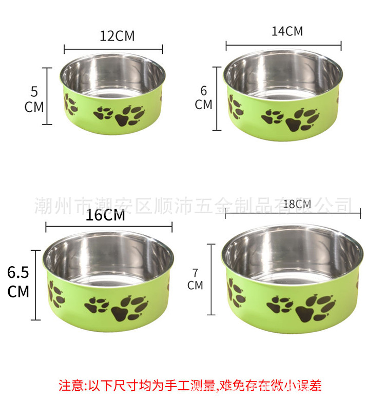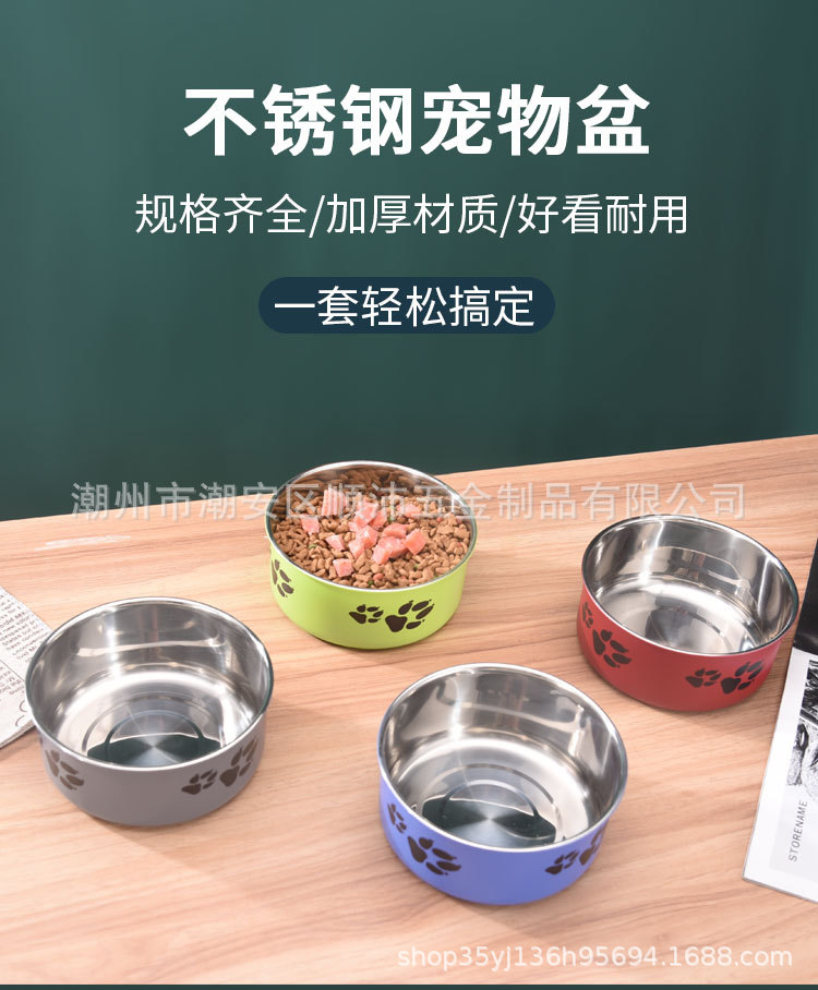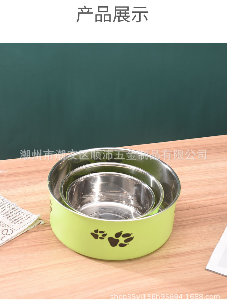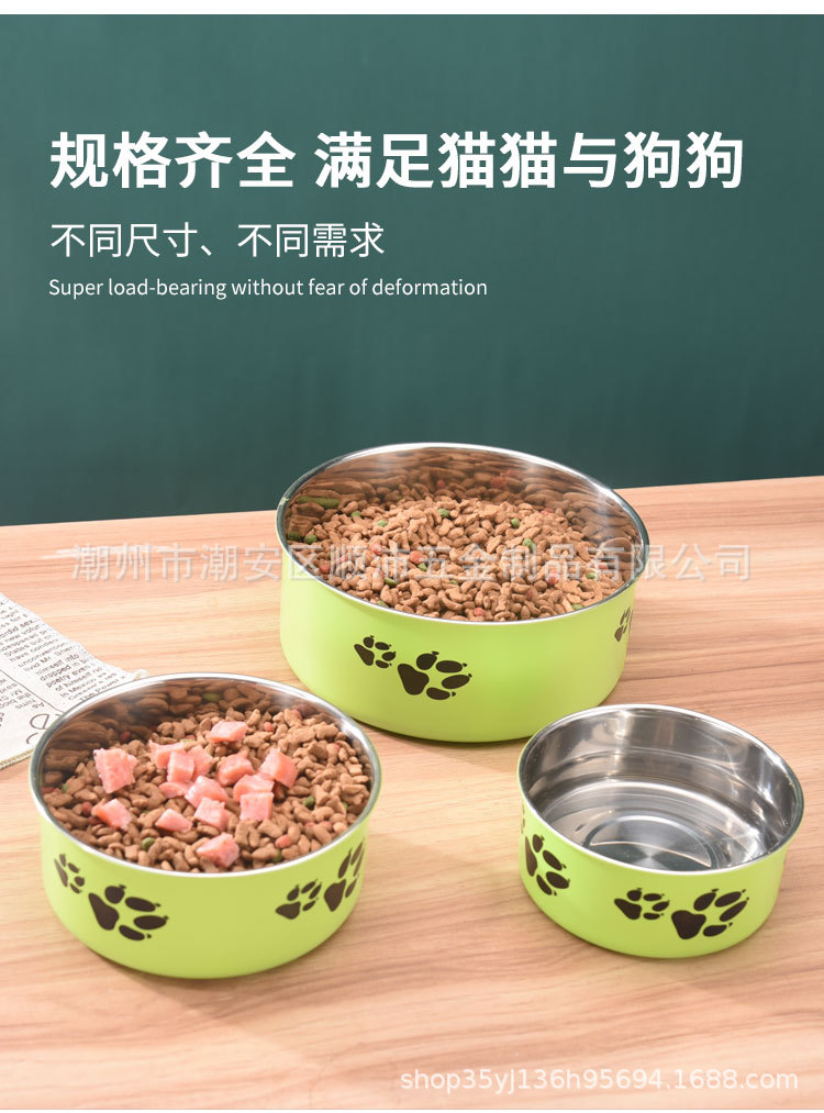 대외 무역 컬러 스테인레스 스틸 애완 동물 분지 도매 개 용품 피더 만화 고양이 사료 그릇 컬링 인쇄 개 그릇