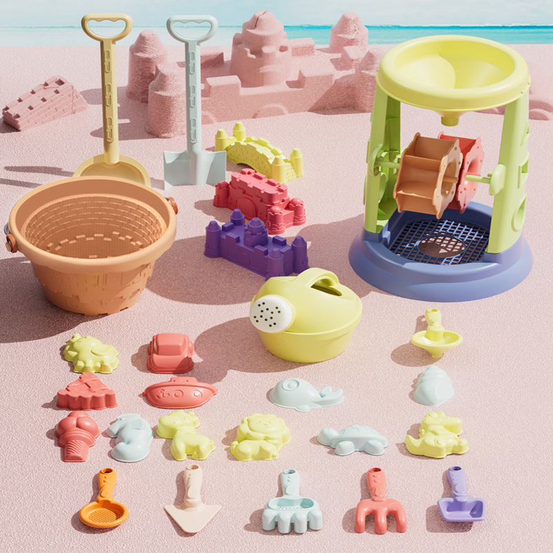 새로운 어린이 해변 장난감 세트 아기 굴삭기 삽 모래 시계 양동이 파기 모래 놀이 모래 도구 배달 보관 가방스토어 가기