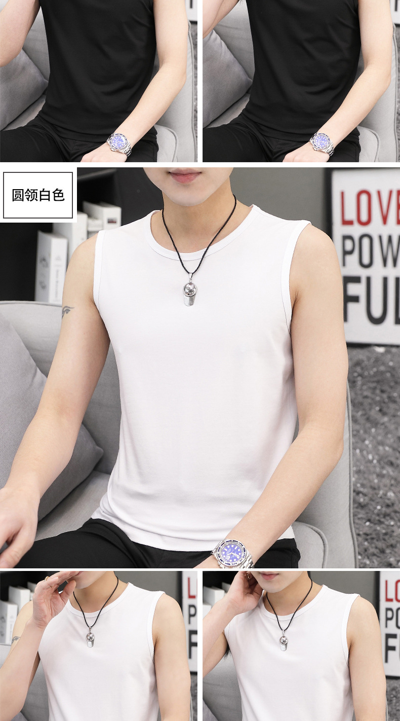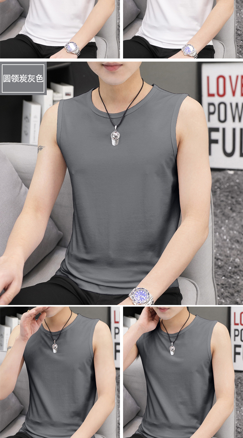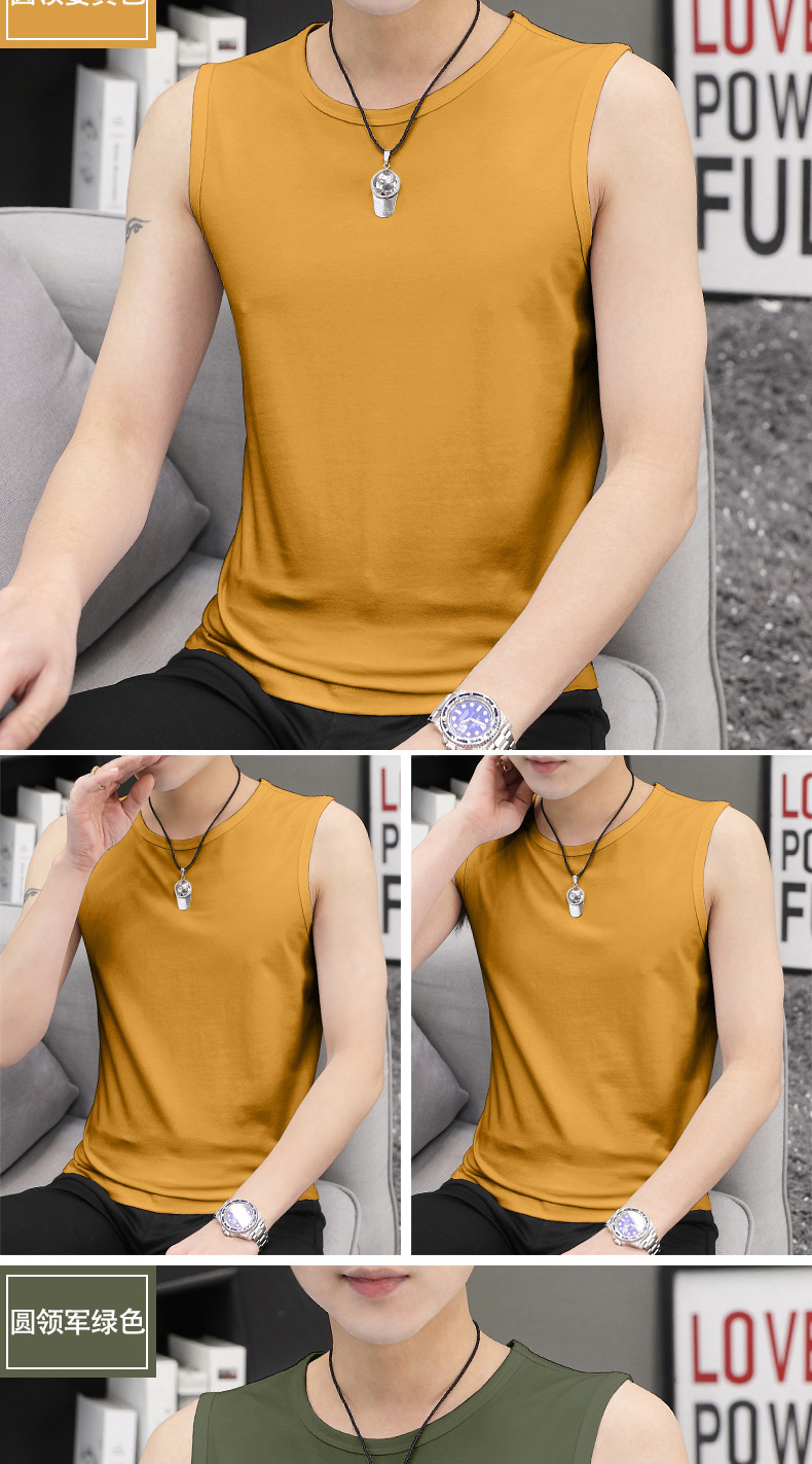 여름 새로운 스타일 순면 남성용 민소매 단색 티셔츠 슬림핏 스포츠 통기성 담요 십대를위한 언더셔츠