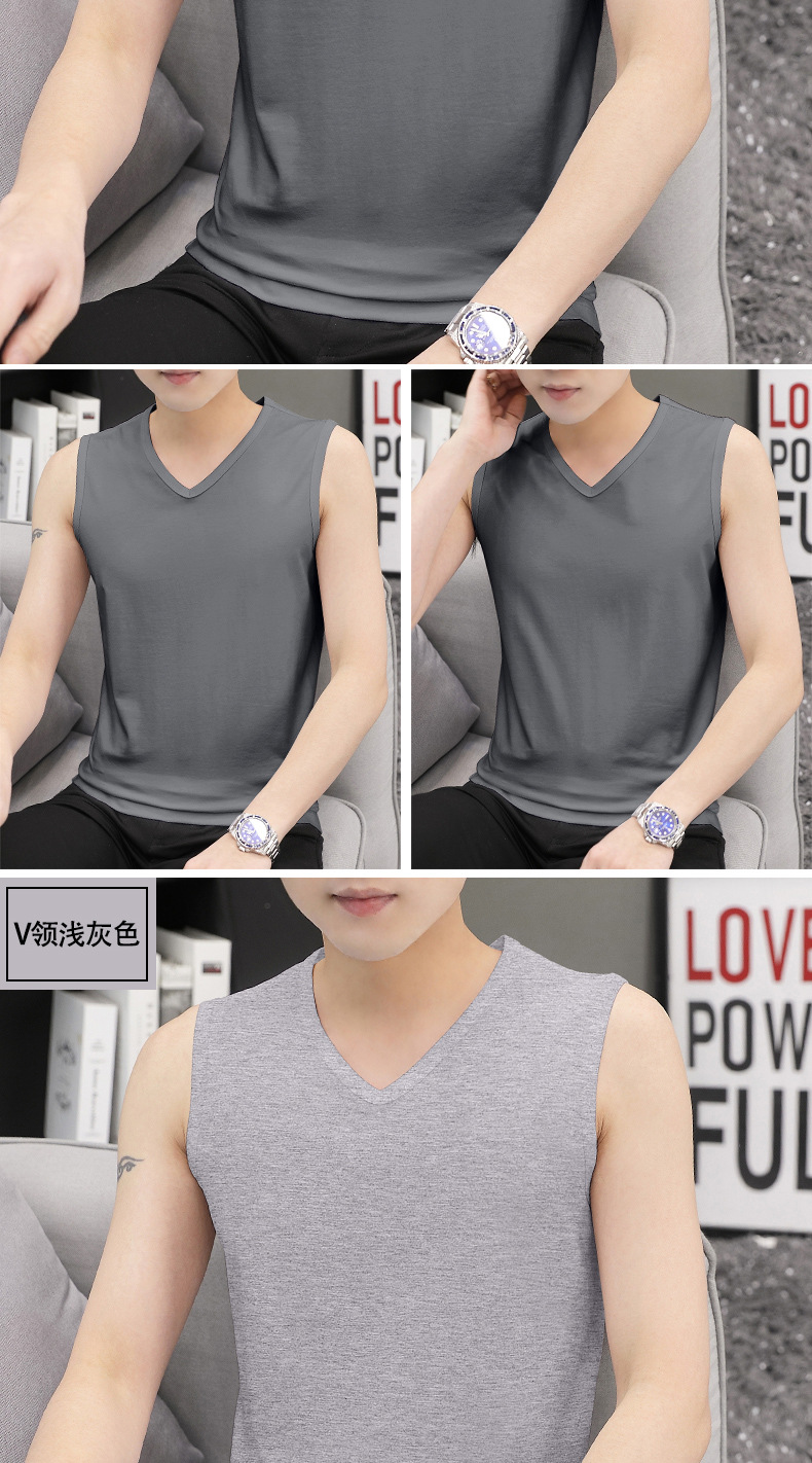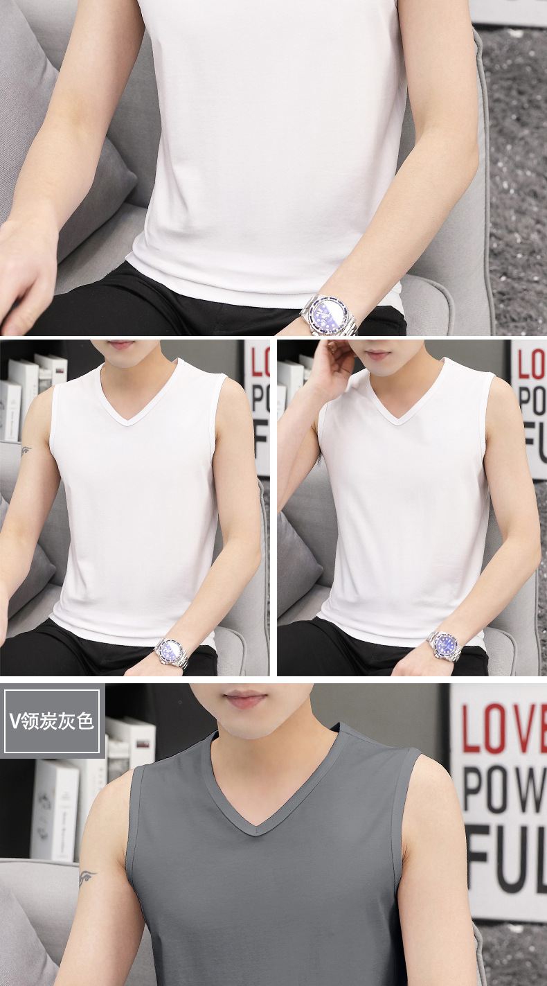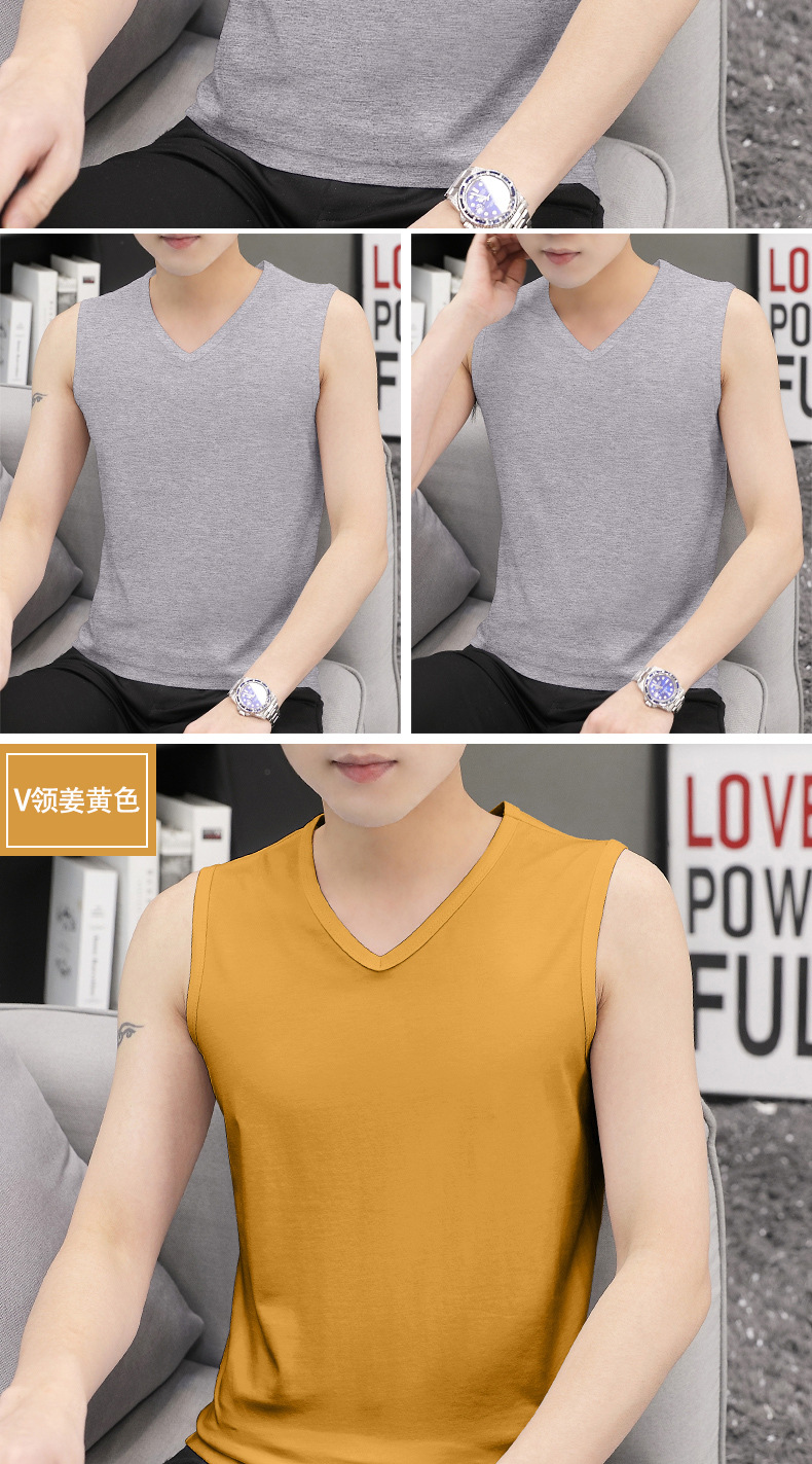 여름 새로운 스타일 순면 남성용 민소매 단색 티셔츠 슬림핏 스포츠 통기성 담요 십대를위한 언더셔츠