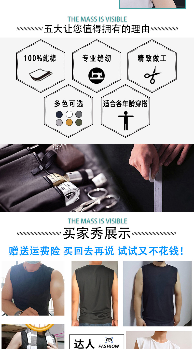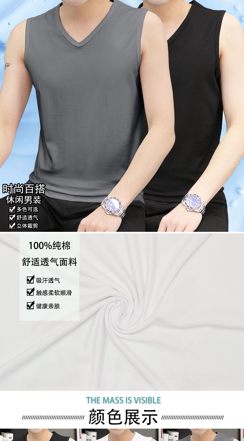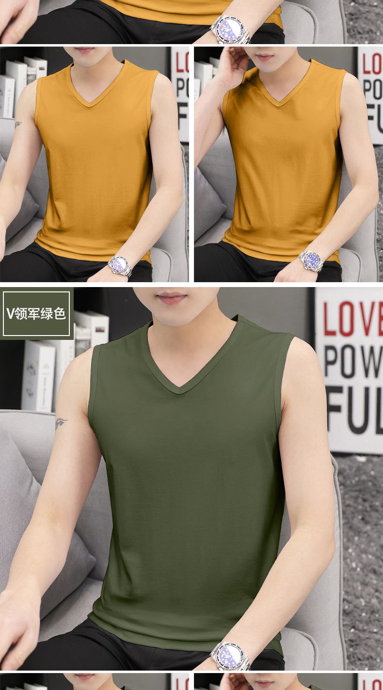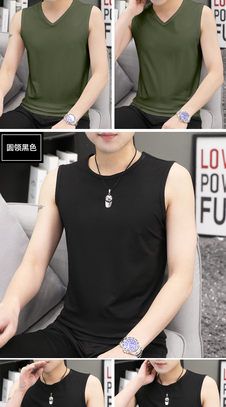 여름 새로운 스타일 순면 남성용 민소매 단색 티셔츠 슬림핏 스포츠 통기성 담요 십대를위한 언더셔츠스토어 가기