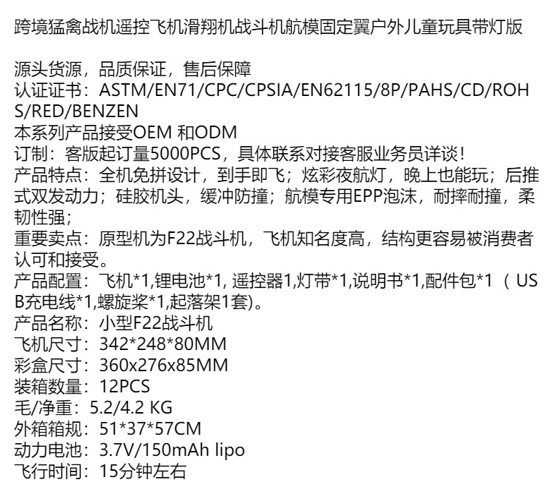 랩터 전투기 622 원격 조종 비행기 글라이더 항공기 모델 고정익 야외 어린이 장난감 비행기 모델