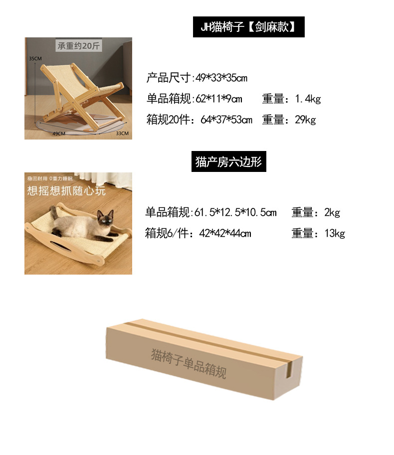 고양이 침대, 조절 가능한 고양이 클라이밍 프레임, 사계절 사용 가능, 긁힘 방지, 부스러기 잘 안뜨는, 비치 체어, 사이잘 그라운드 플레이트, 일체형 둥지스토어 가기