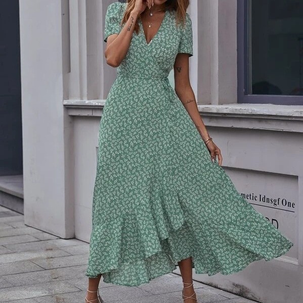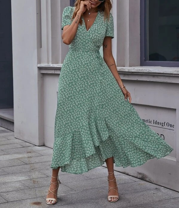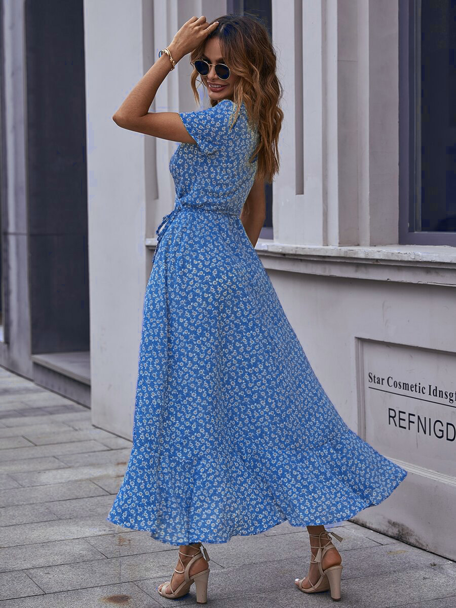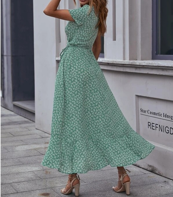 2023 크로스 국경 유럽과 미국 아마존 새로운 카디건 허리 스윙 원피스