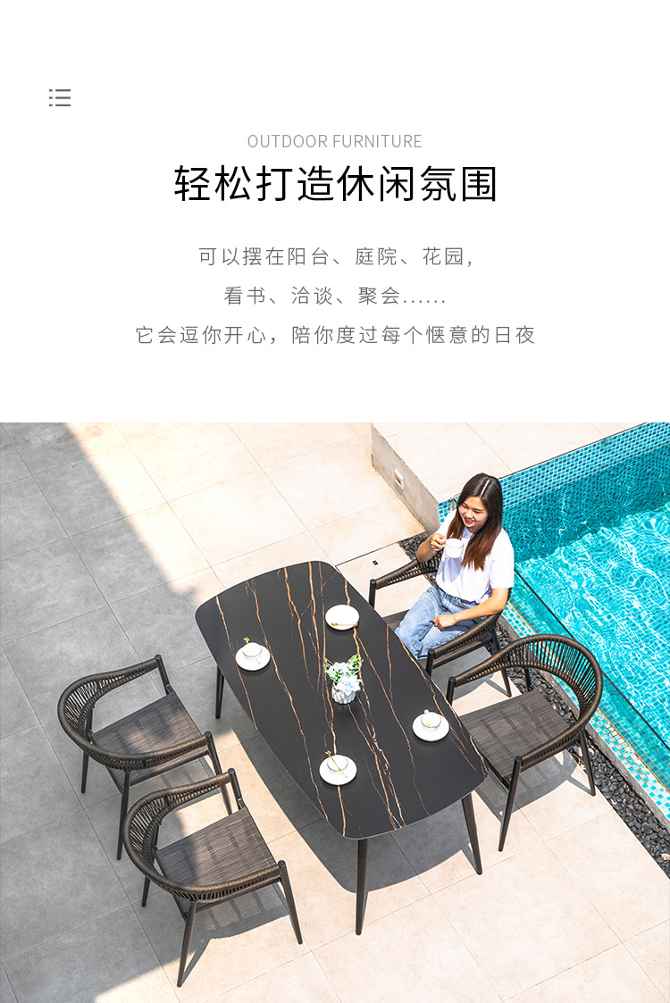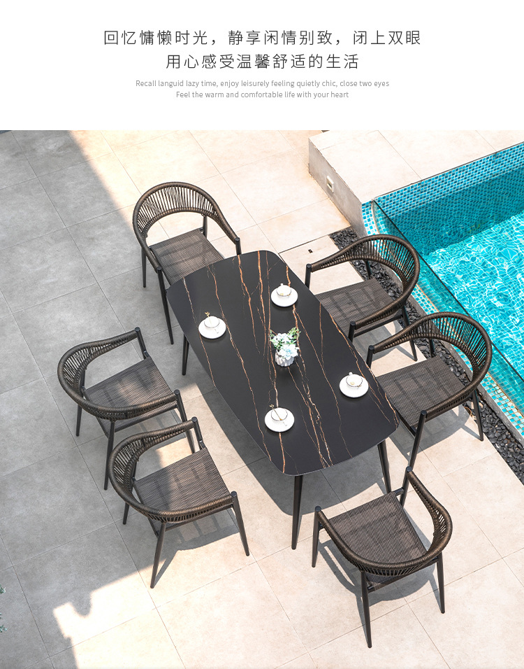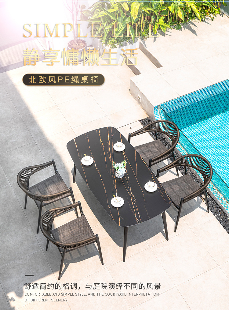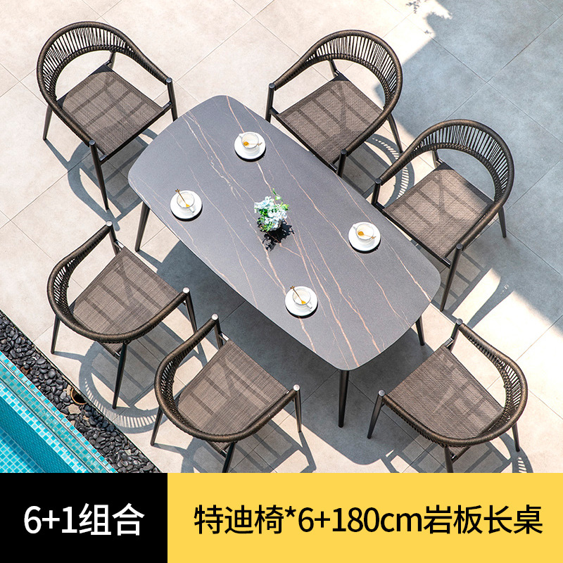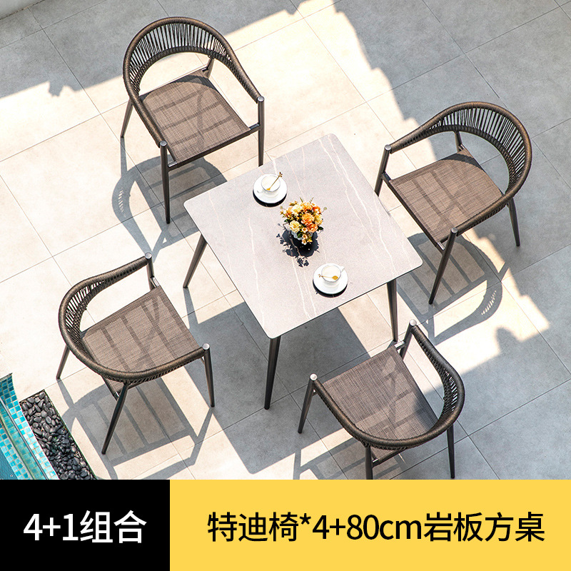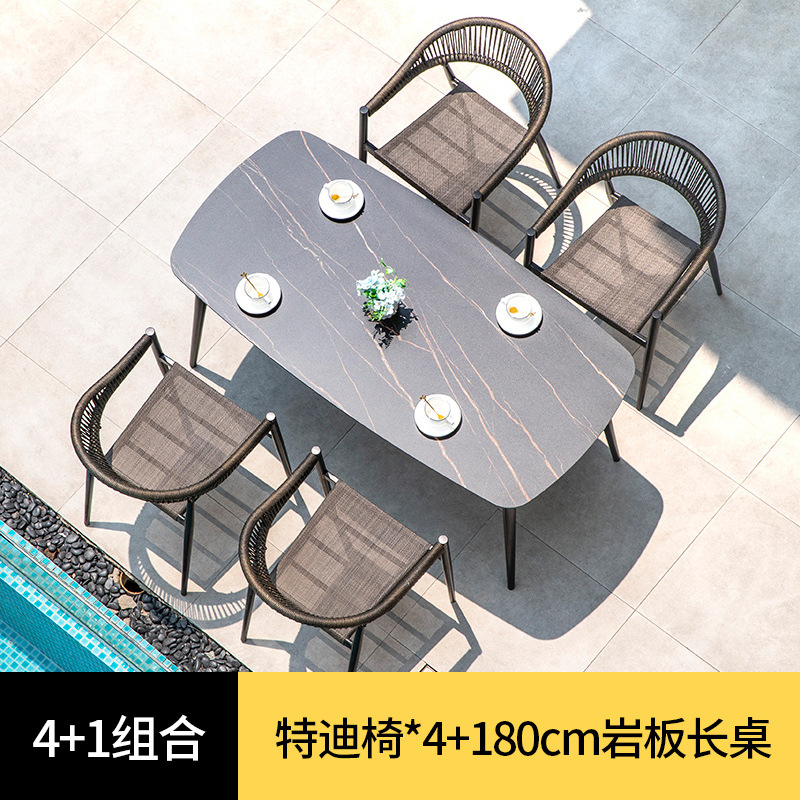 북유럽 스타일 야외 테이블과 의자 안뜰 레저 야외 썬 룸 테라스 빌라 가든 모던 심플 록 보드 식탁과 의자스토어 가기