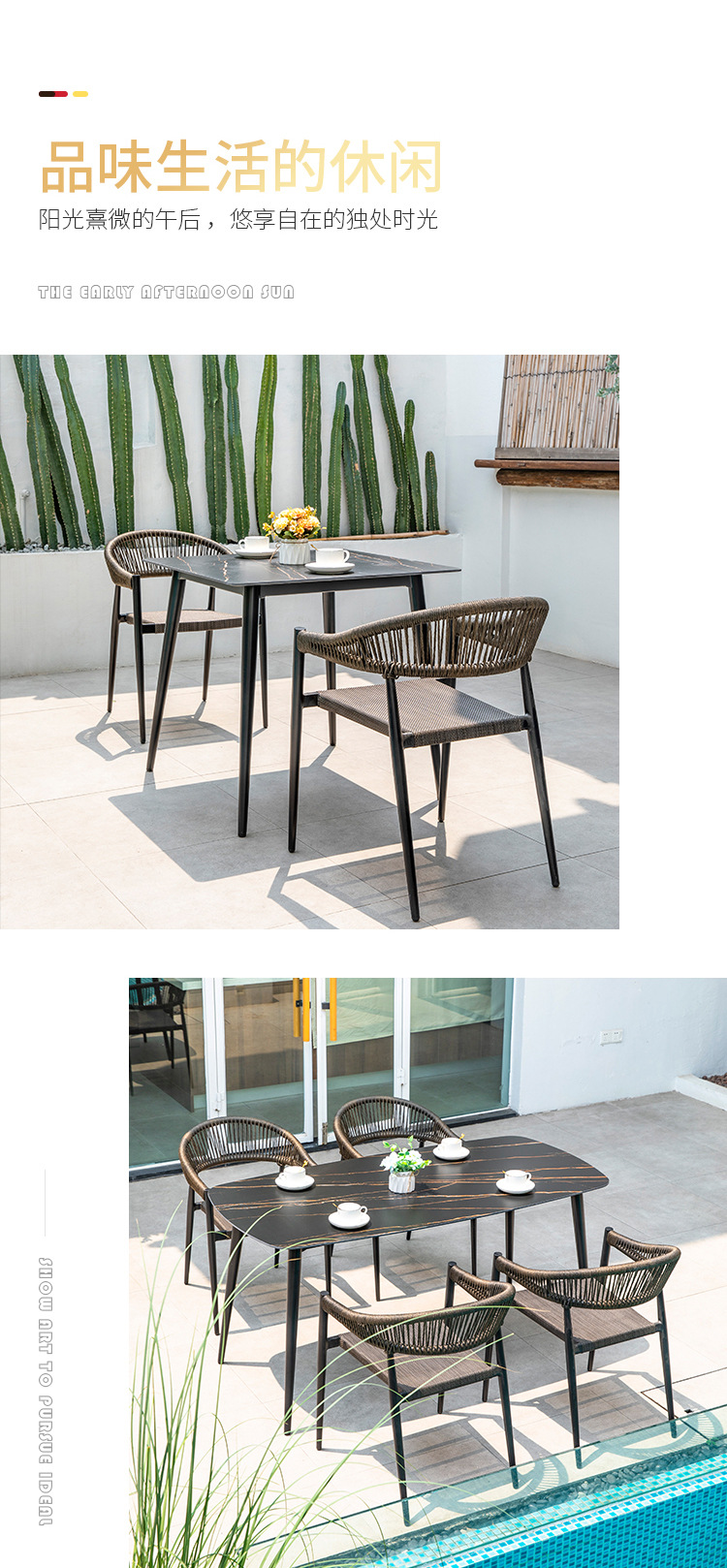 북유럽 스타일 야외 테이블과 의자 안뜰 레저 야외 썬 룸 테라스 빌라 가든 모던 심플 록 보드 식탁과 의자