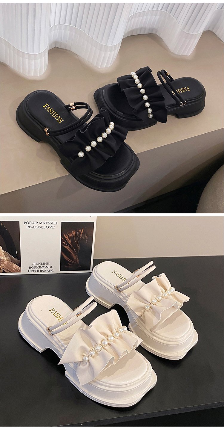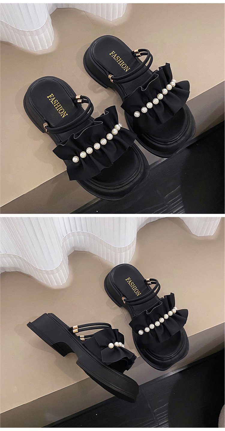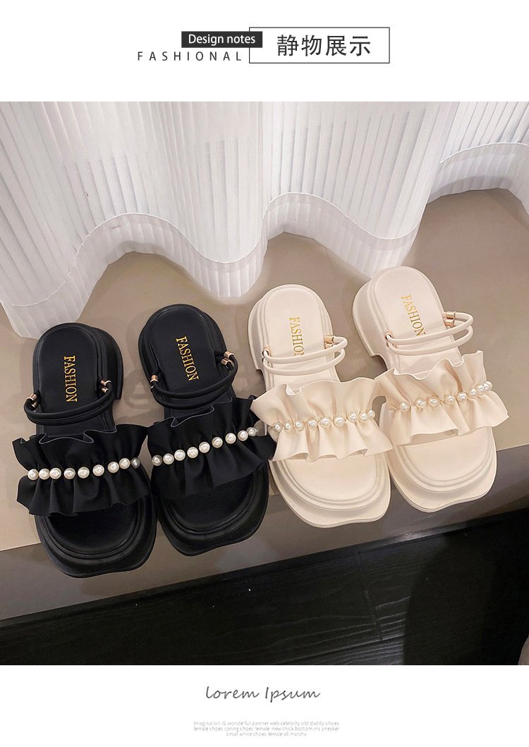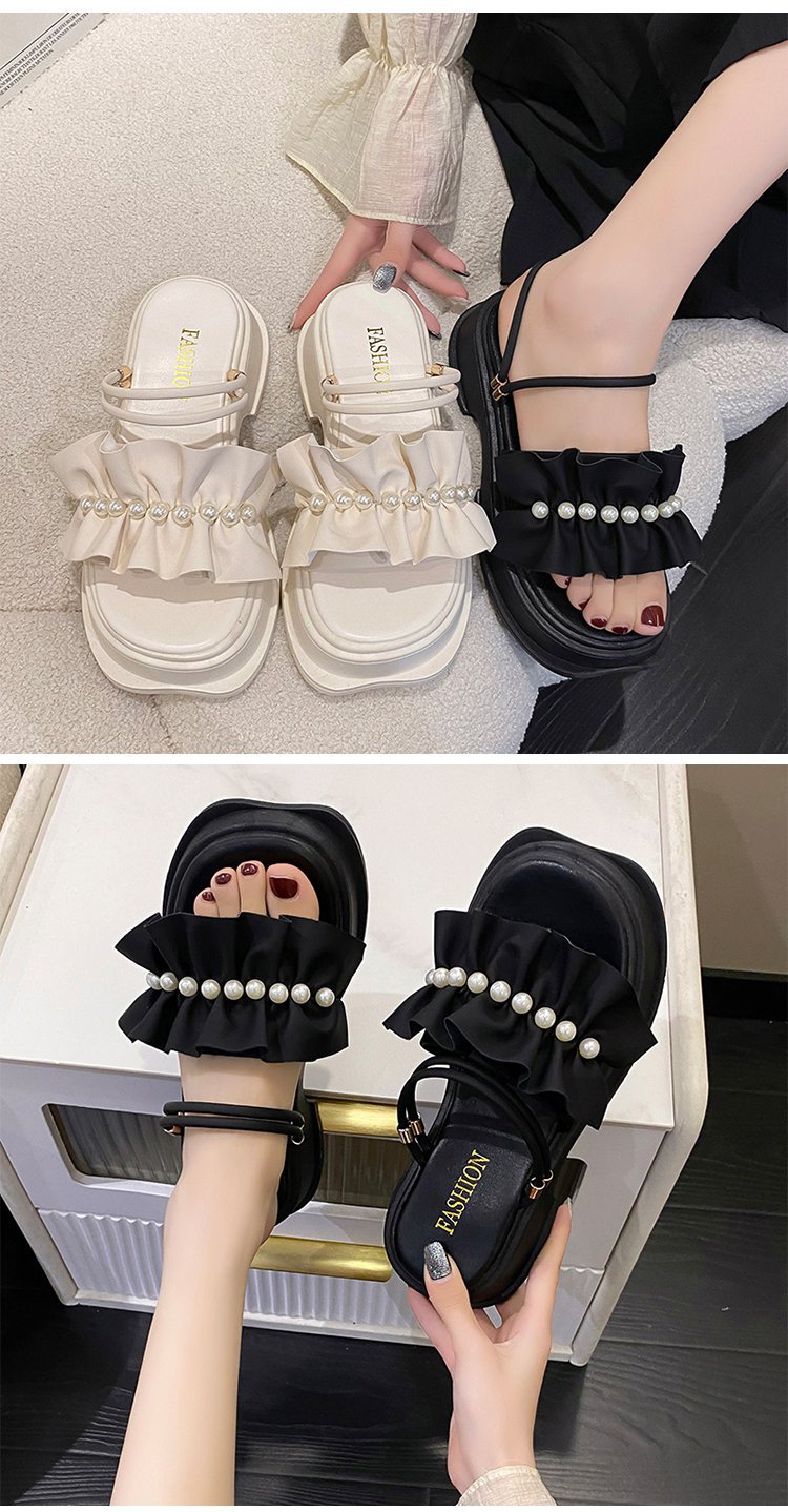 여성용 두꺼운 밑창 샌들, 2025년 여름 신상, 러플 디자인 투웨이 샌들 슬리퍼, 넓은 발볼 여성용 신발스토어 가기