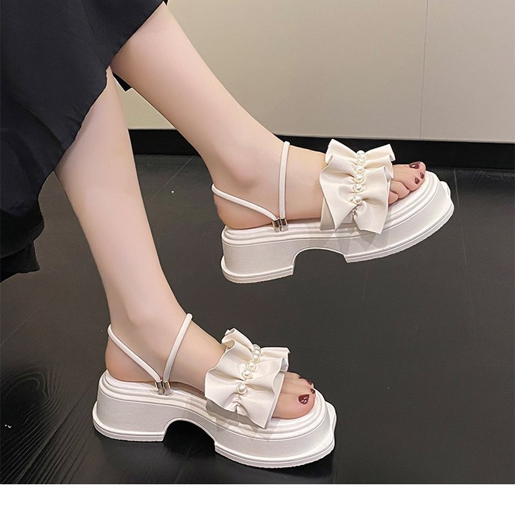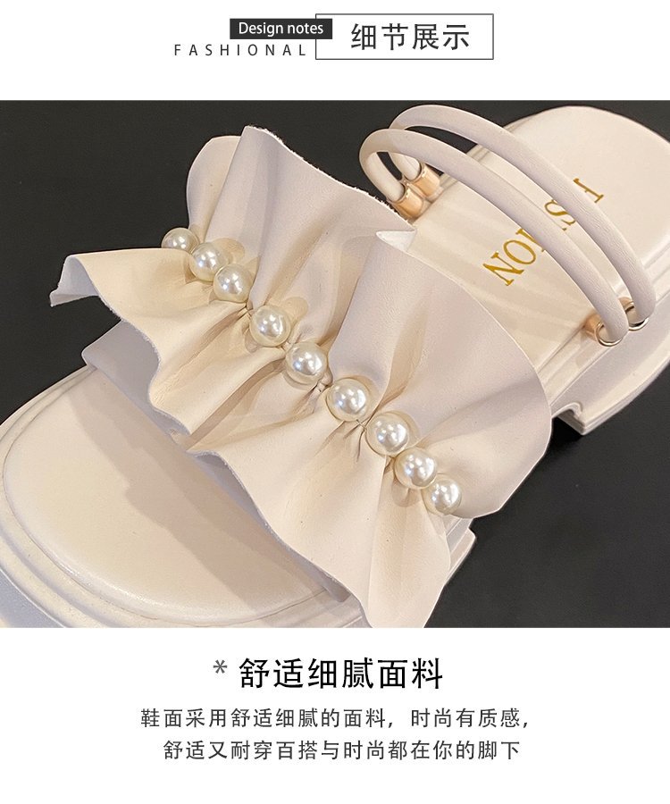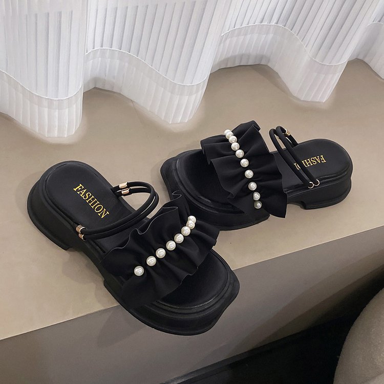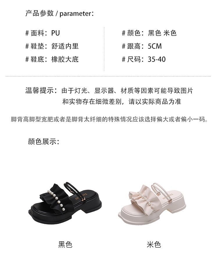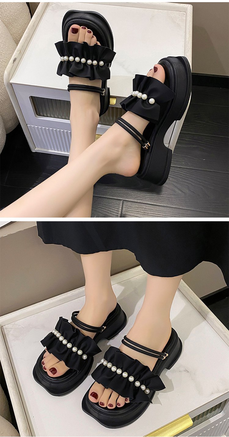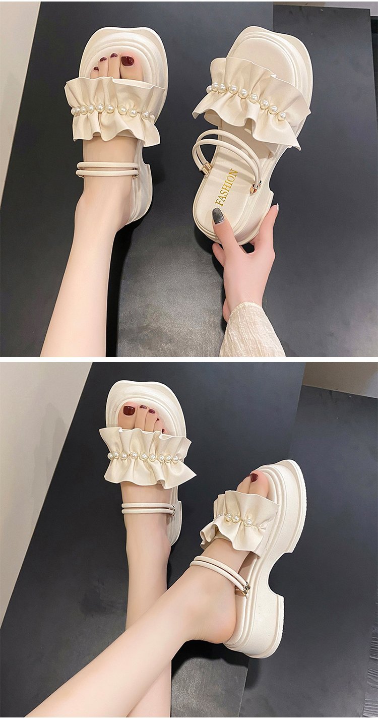 여성용 두꺼운 밑창 샌들, 2025년 여름 신상, 러플 디자인 투웨이 샌들 슬리퍼, 넓은 발볼 여성용 신발스토어 가기