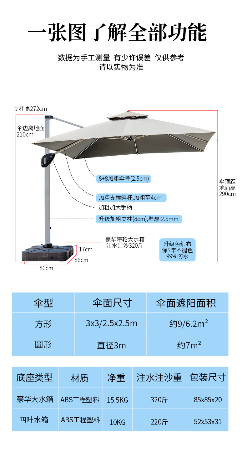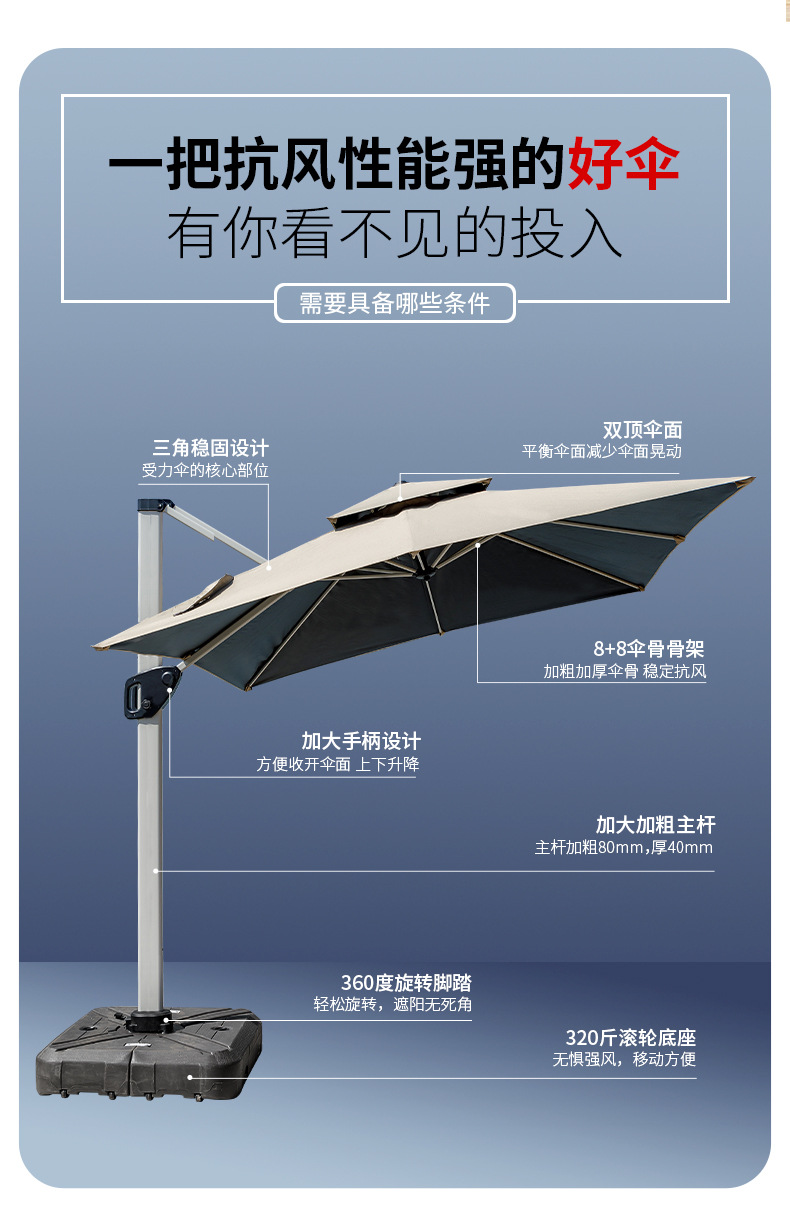 • [크로스 사이드 길이 2.5 m] 스퀘어 포 본 행잉 사이드 렌치 우산