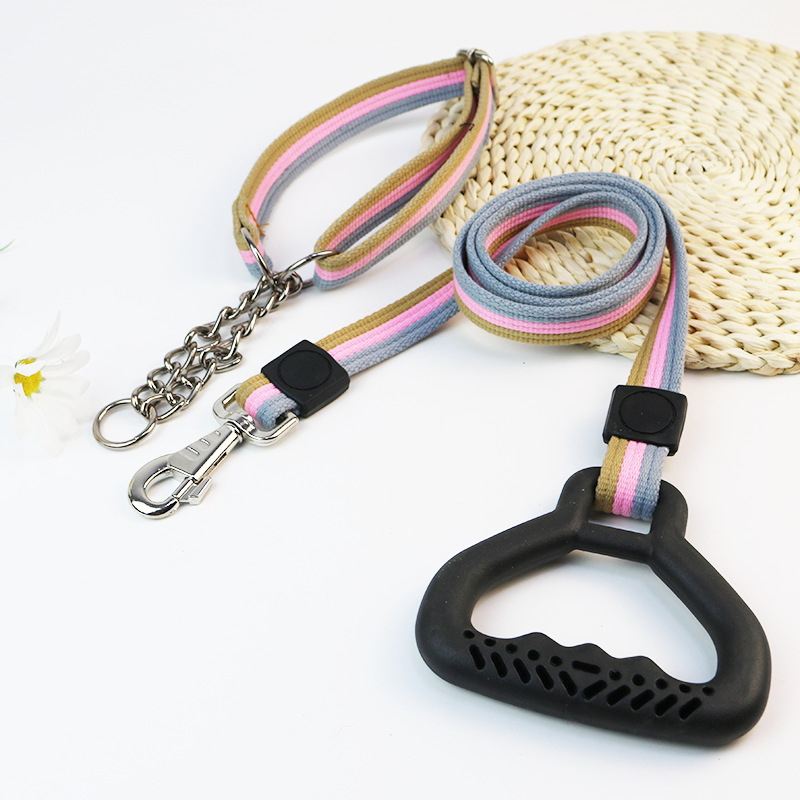 도매 크로스 보더 짠 컬러 면 로프 애완 동물 개 가죽 끈 목걸이 개 가죽 끈 개 체인 중형 및 대형 개 아마존스토어 가기