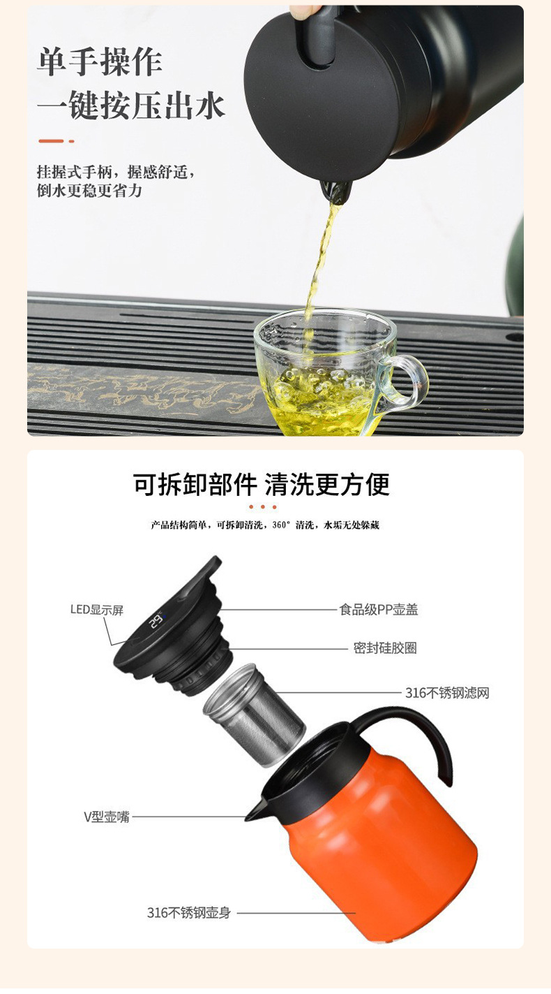 316 스테인레스 스틸 스튜 주전자 가정용 대용량 열 보존 주전자 차 분리 주전자 디지털 디스플레이 열 보존 주전자스토어 가기