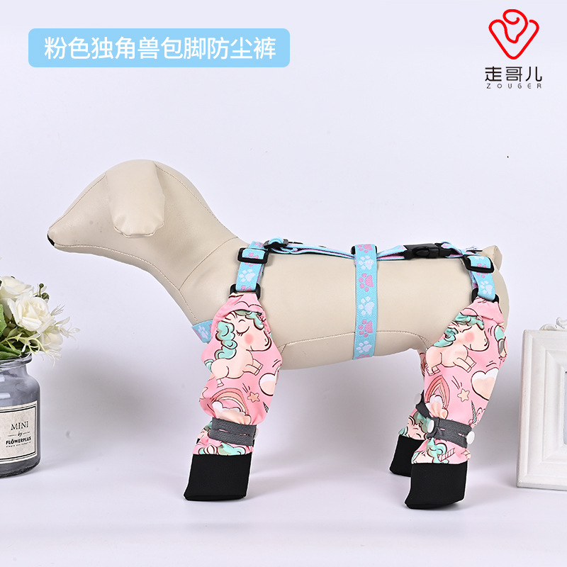애완 동물 소변 방지 다리 먼지 바지 스트랩 다리 커버 비 방지 더러운 발 곤충 방지 하이팩 발 결합 개 산책복스토어 가기