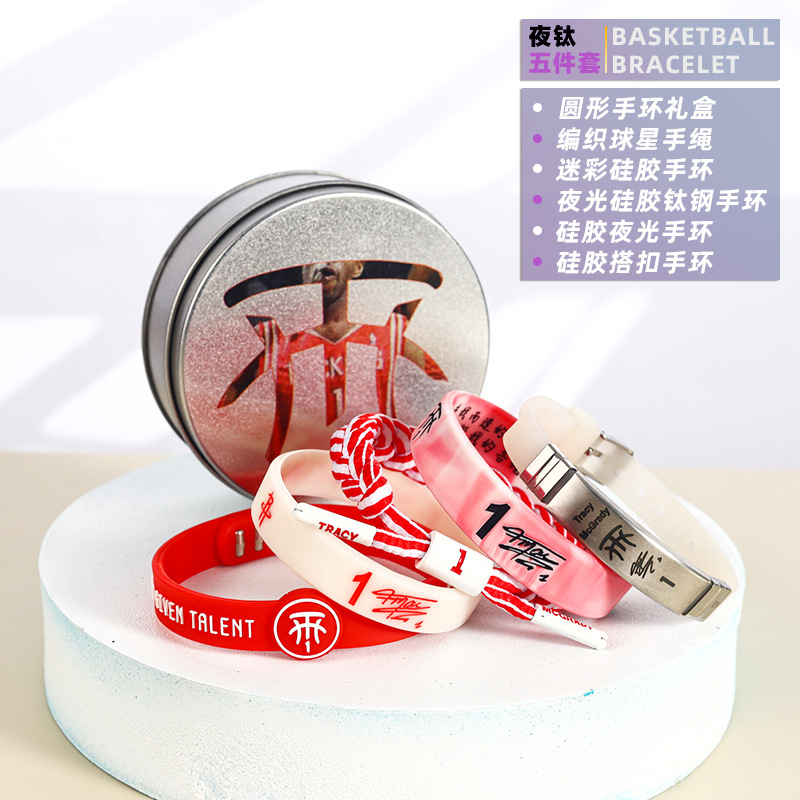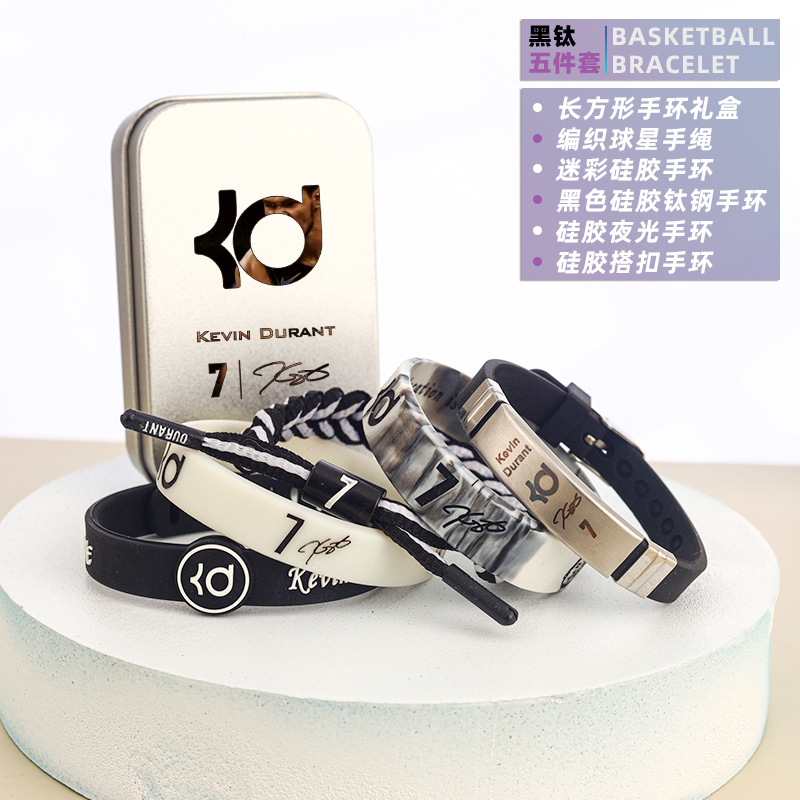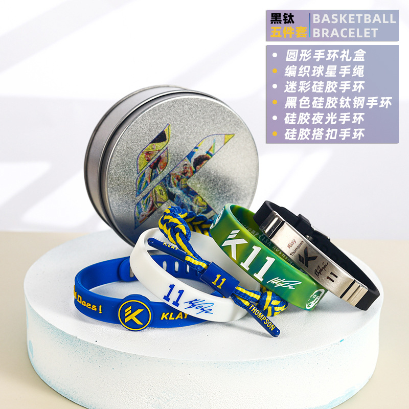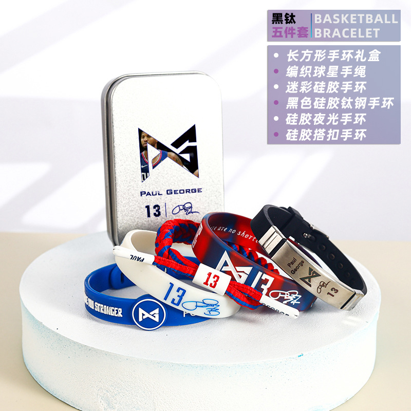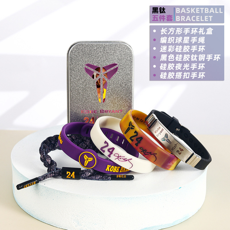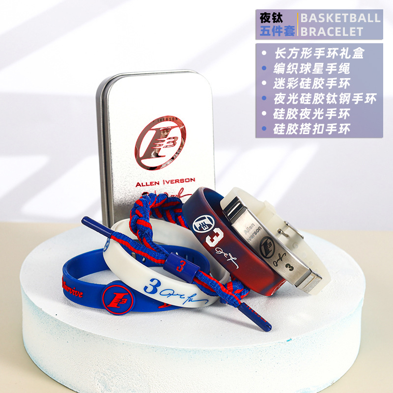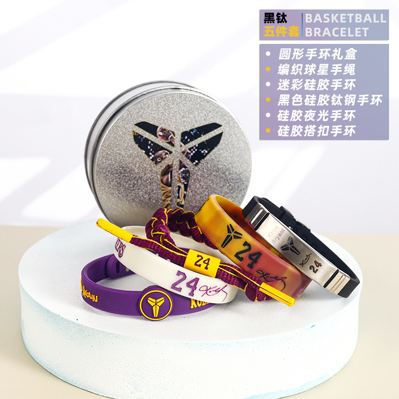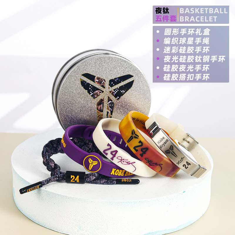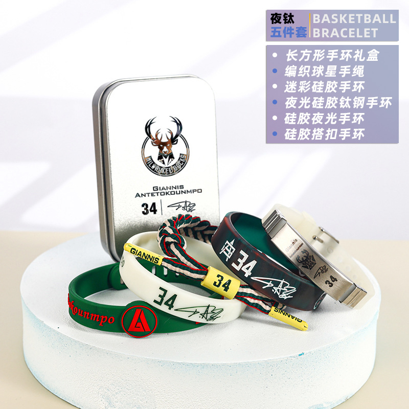 농구 팔찌 두꺼운 실리콘 발광 스포츠 팔찌 스타 꼰 핸드 로프 티타늄 스틸 팔찌 5 피스 선물 상자스토어 가기