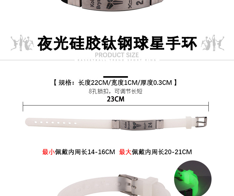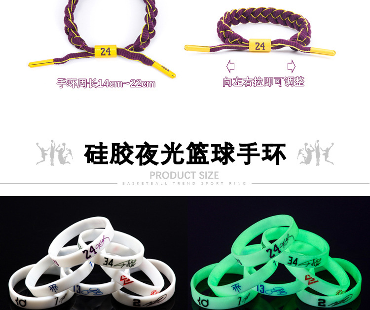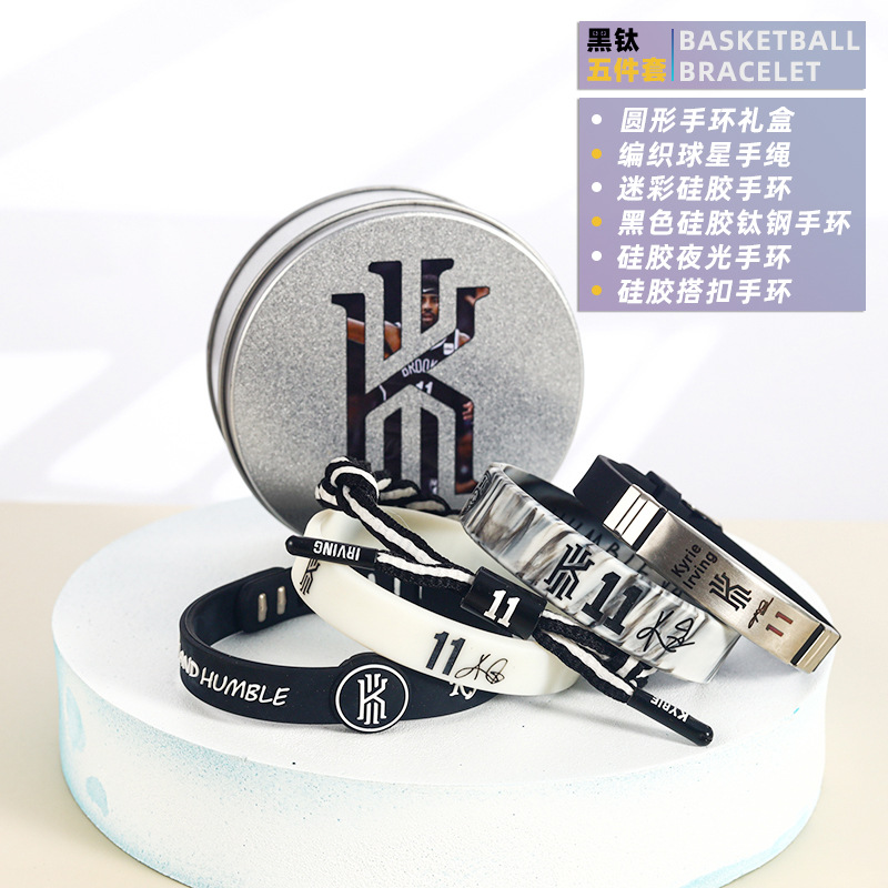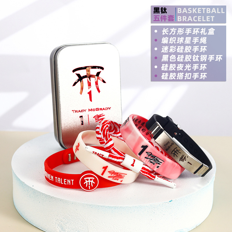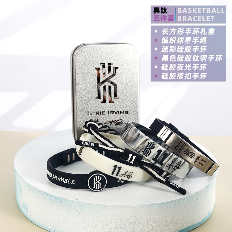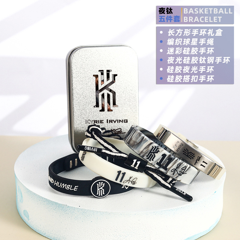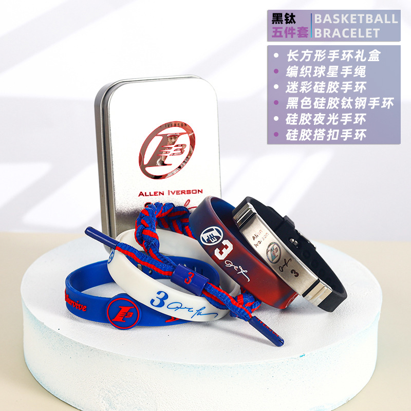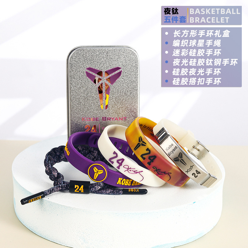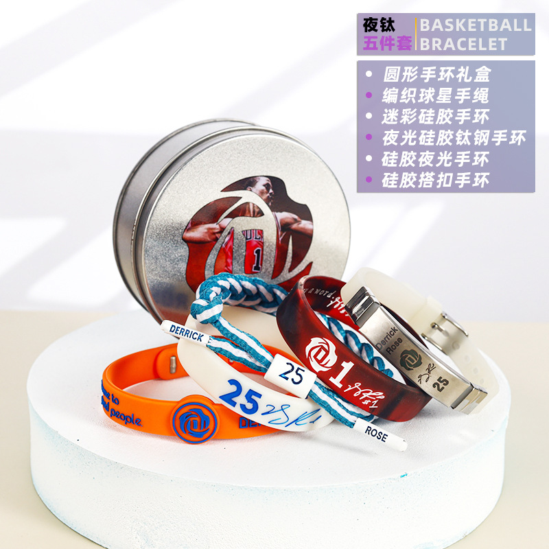 농구 팔찌 두꺼운 실리콘 발광 스포츠 팔찌 스타 꼰 핸드 로프 티타늄 스틸 팔찌 5 피스 선물 상자스토어 가기